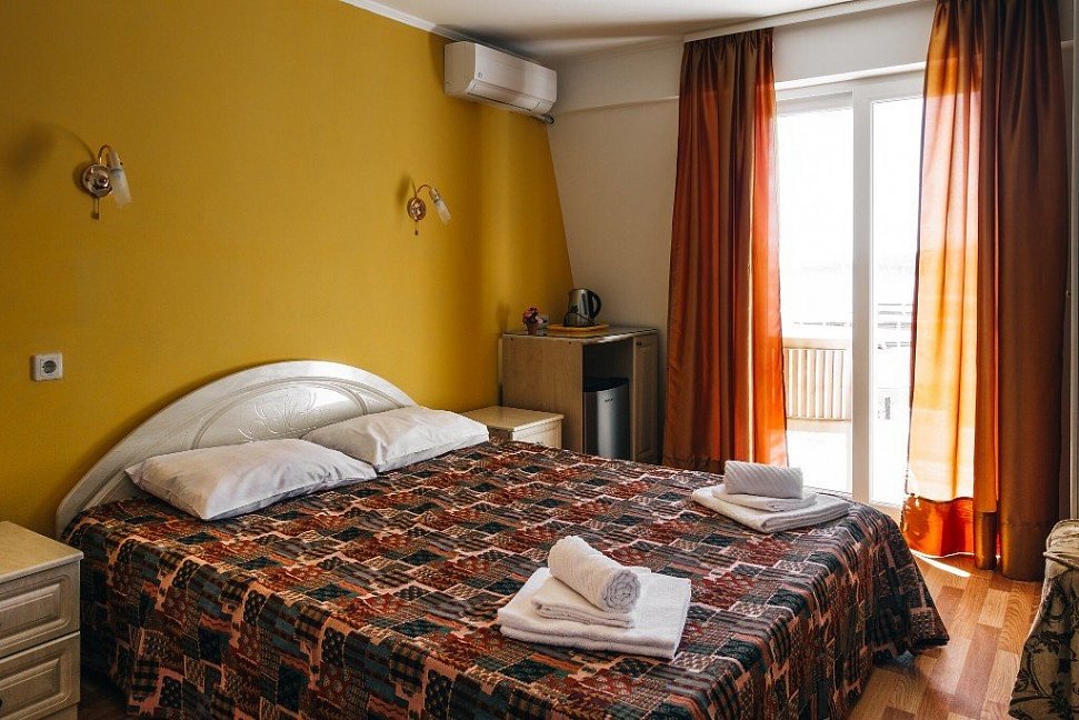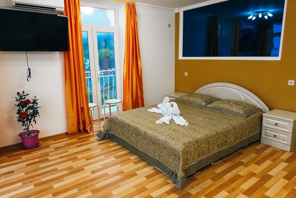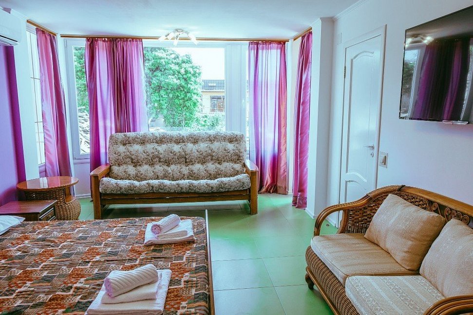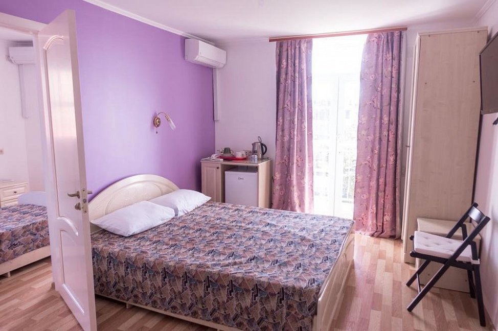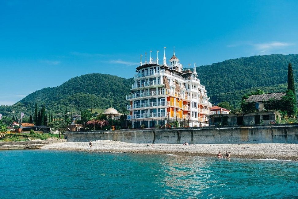 Расположение: Первая линия (20 м до пляжа), 2 км до центра, 100 км до аэропорта Адлер