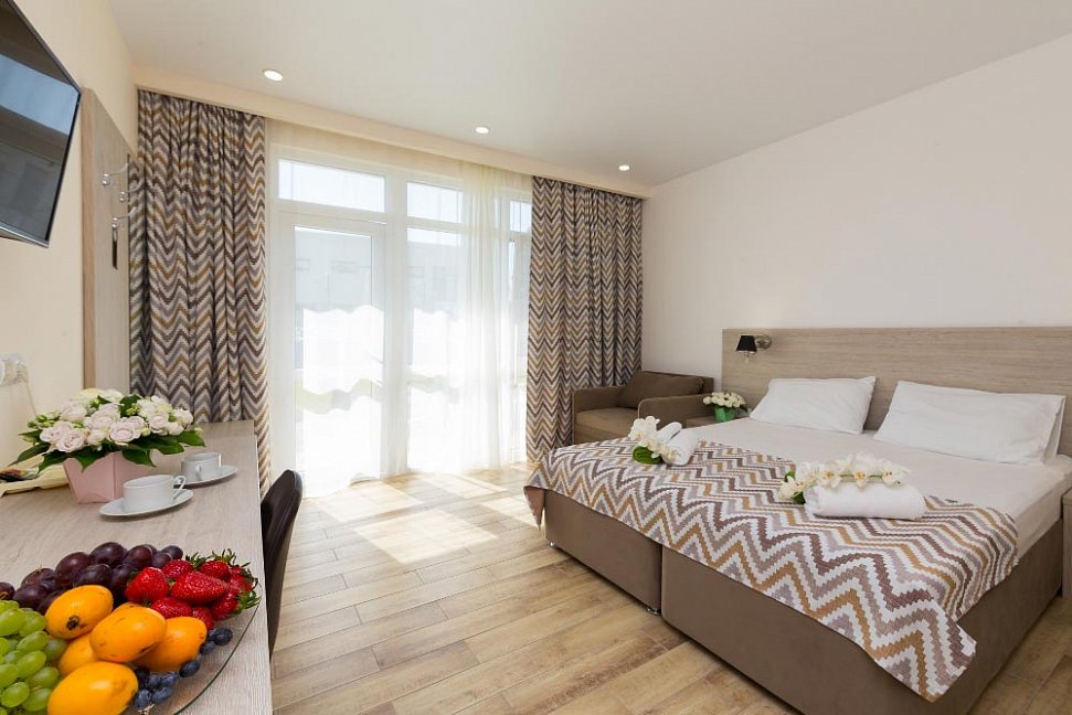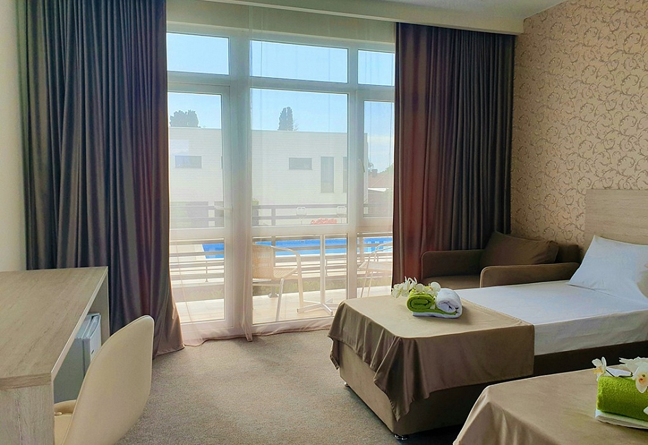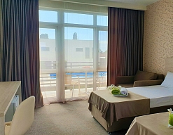 Отличный отель! Всё в точности как заявлено на фото! Были в начале октября, поэтому очень рассчитывали на бассейн, чтобы искупаться если не в море, так хотя бы в нем.
