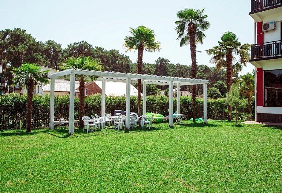 Расположение: Первая линия у моря (100 м до пляжа), 2 км до центра Пицунды, 58 км до аэропорта Адлер