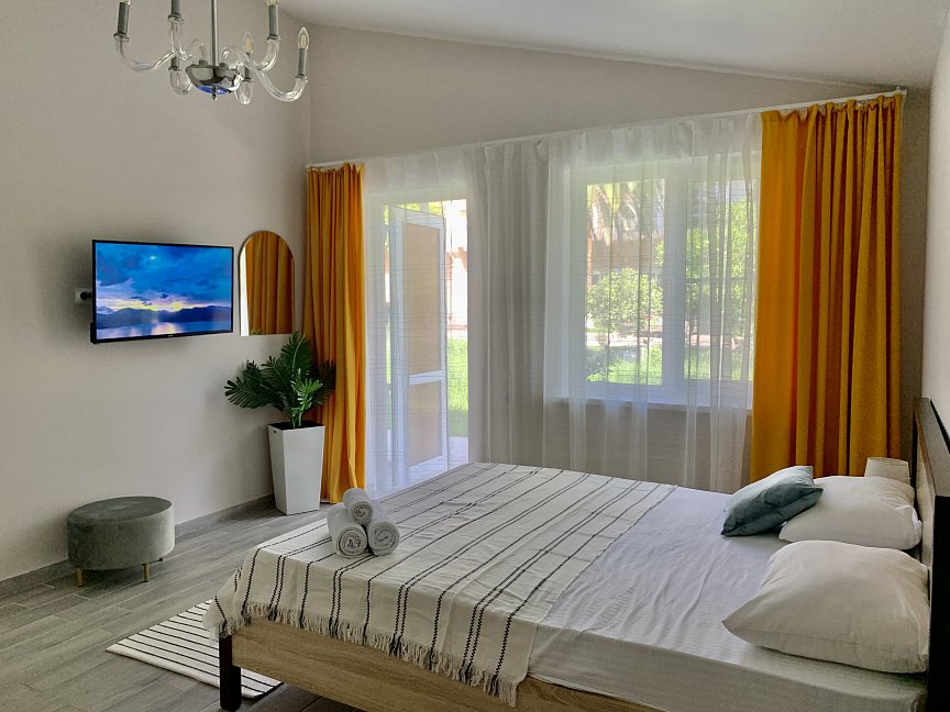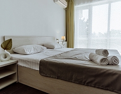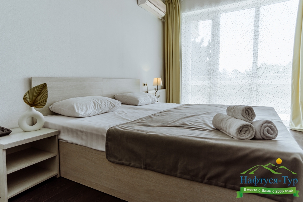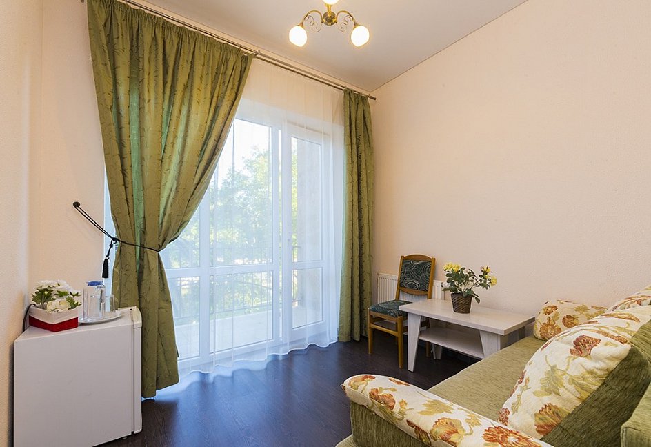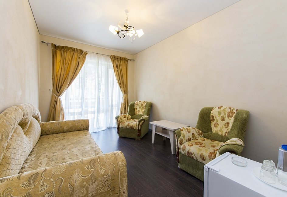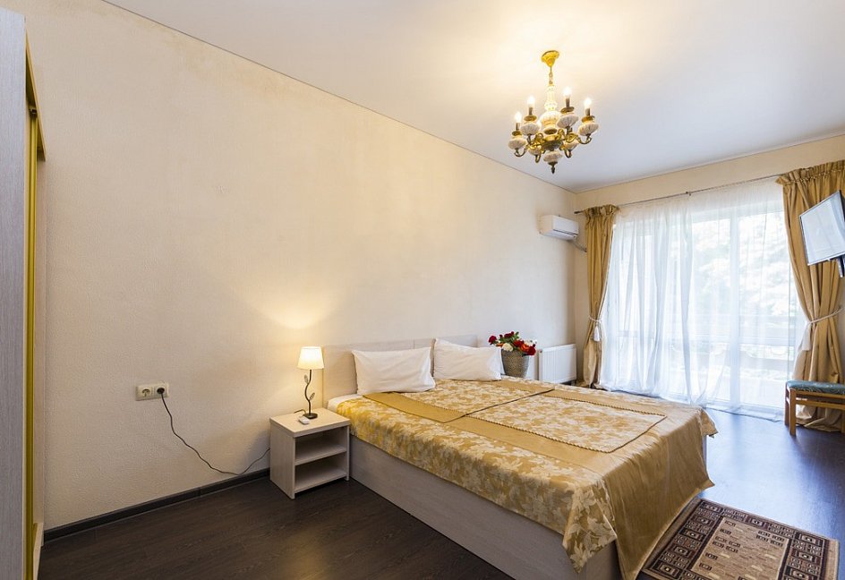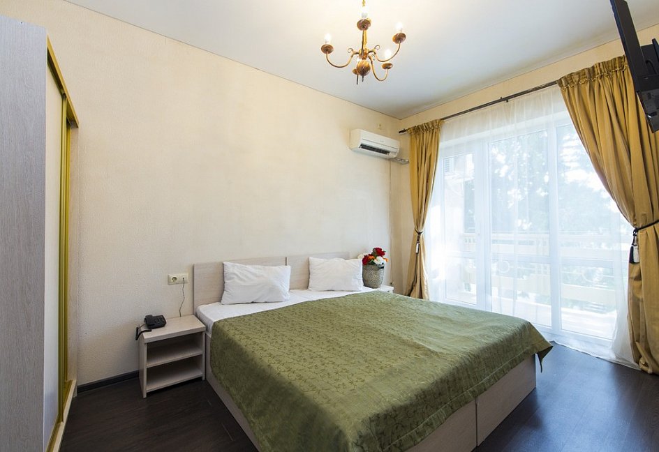 Отдыхали в сентябре 2016 г. Двое взрослых. Номер двухместный. Всё понравилось. В номере кондиционер, телевизор, холодильник, шкаф купе, ванная комната.