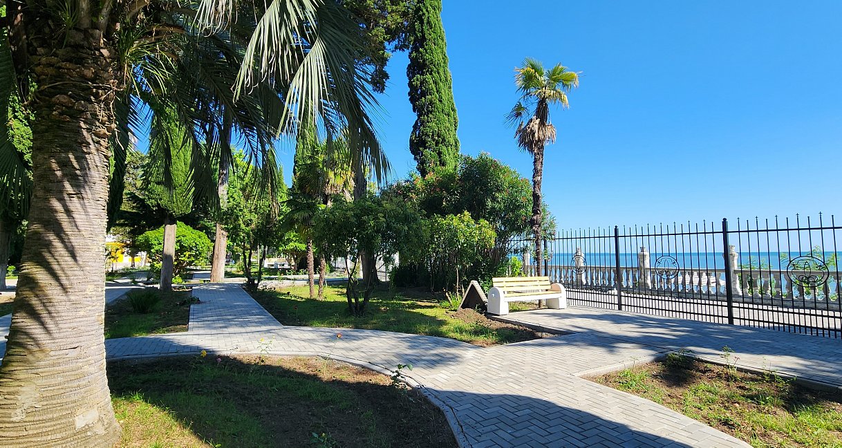 Расположение: Первая линия у моря (30 м до пляжа), 100 м до центра Сухум, 120 км до аэропорта Адлер