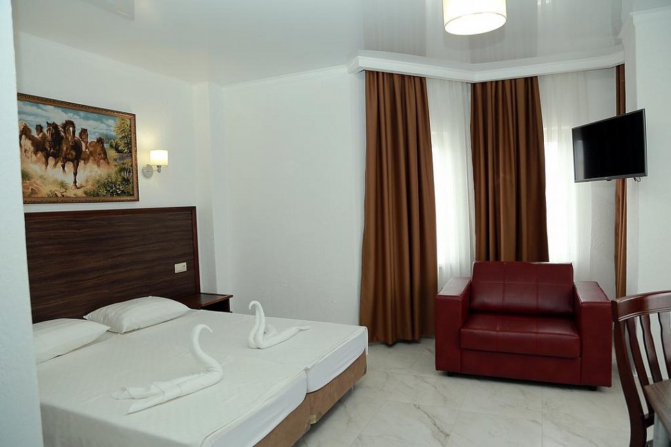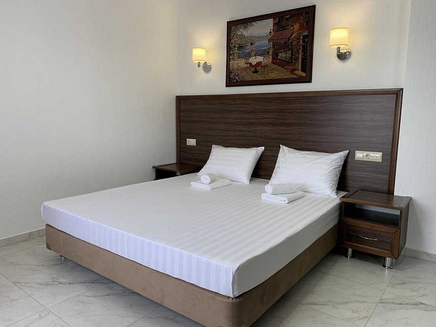 Очень все понравилось, отдыхали с мужем. Отель новый, все чистенькое, уборка номеров ежедневная. Персонал очень приветливый, ни одна просьба не оставалась без внимания. Хозяин дружелюбный. В общем, все на 5 с +. Очень советую для семейных пар без детей.