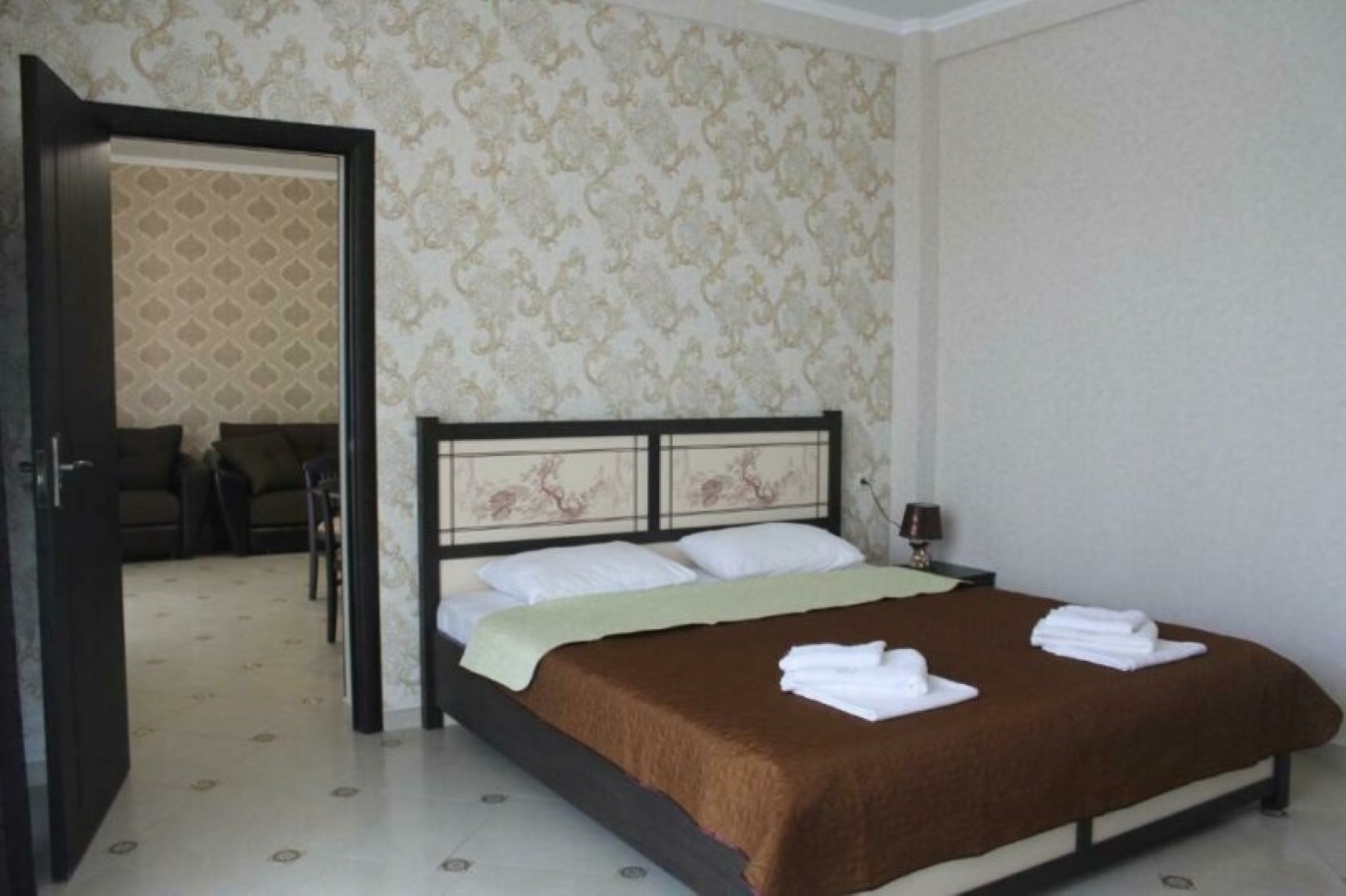 Гостевой дом "Санрайз" находится в 3 км от российской границы, что дает возможность в любое удобное время быстро добраться до Адлера или до Красной поляны. В 700 м находится галечный общественный пляж. На территории имеется открытый каркасный бассейн, парковка, оборудована летняя кухня. В пешей доступности рынок, магазины, аптеки и остановка общественного транспорта. Дети до 2 лет автоматически бронируются без места и питания бесплатно (размещаются на одной кровати с родителями) Расчетный час: заезд после 14:00, выезд до 12:00 Размещение с животными запрещено