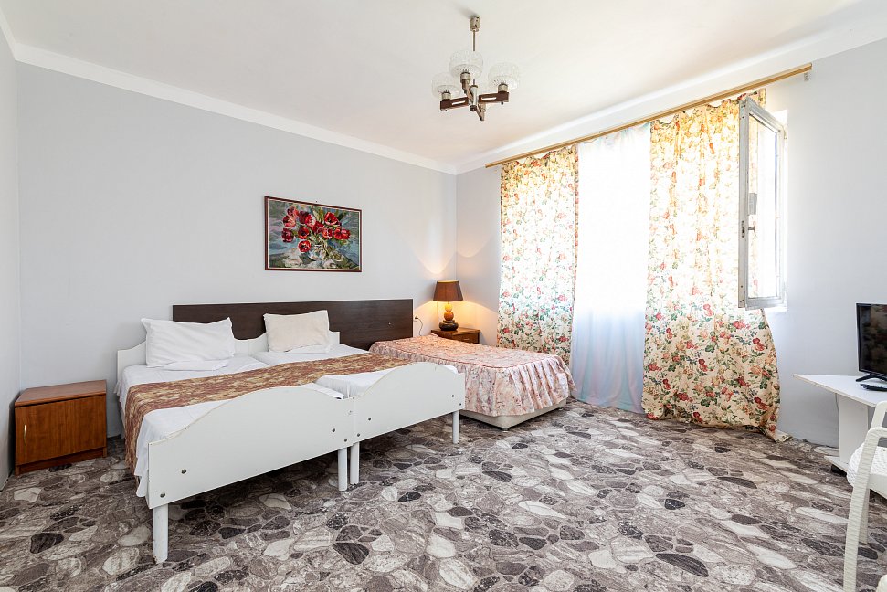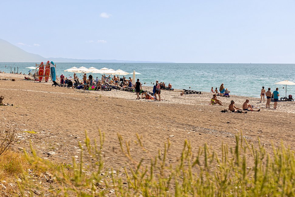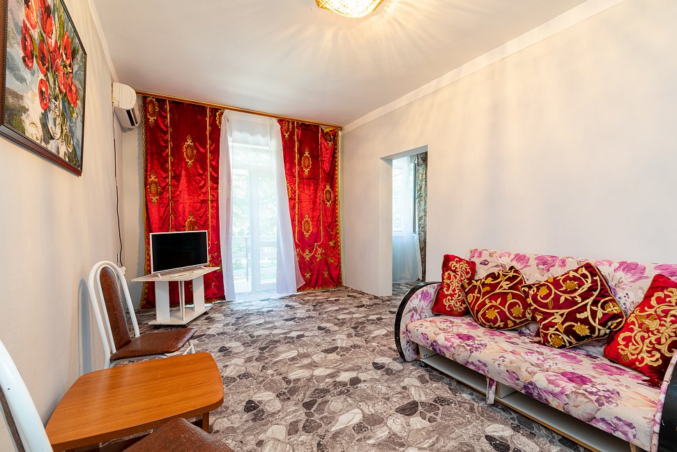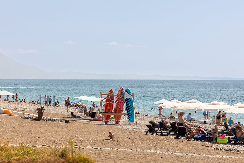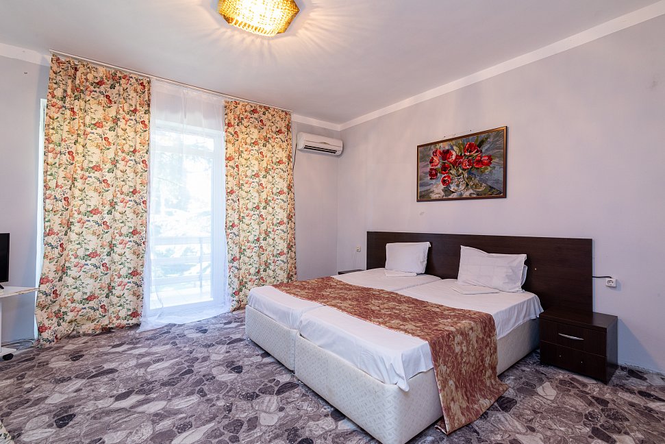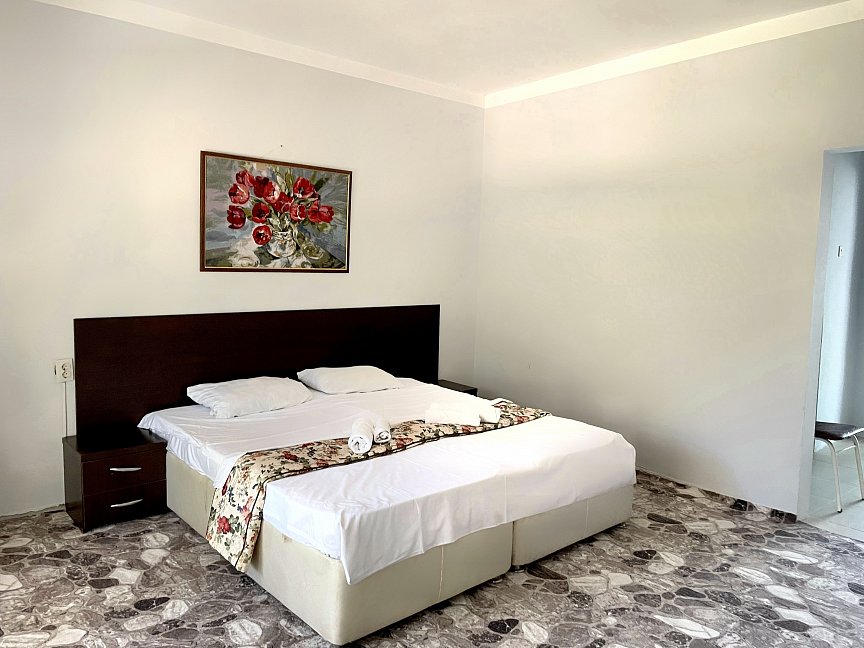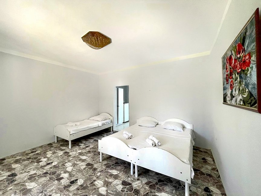 Расположение: Первая линия у моря (100 м до пляжа), 100 м до центра, 18 км до аэропорта Адлера. Гечприш