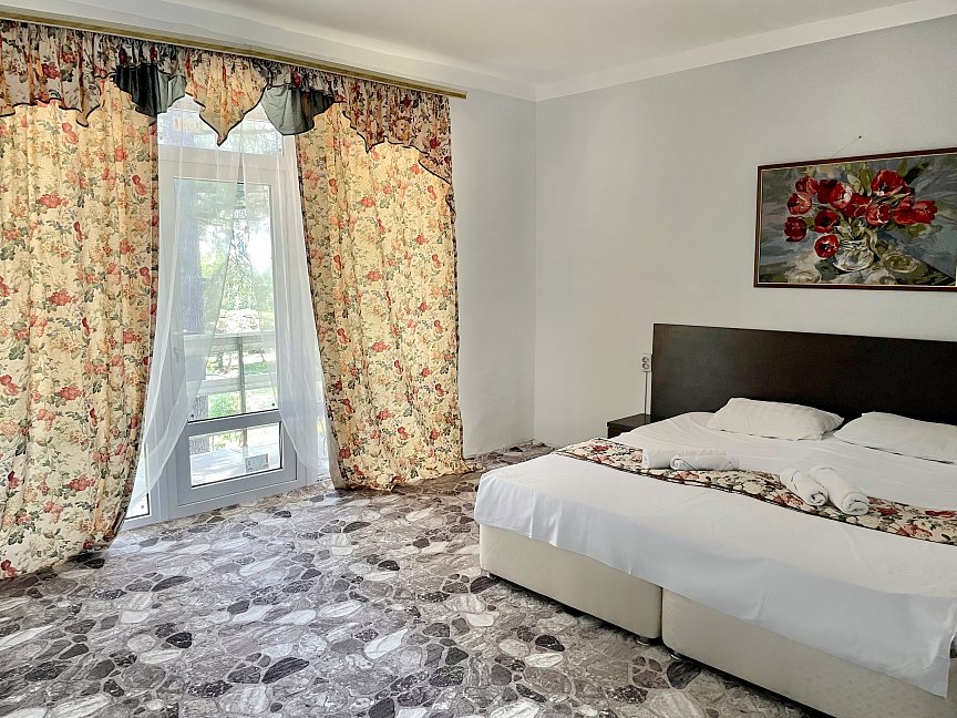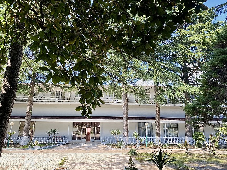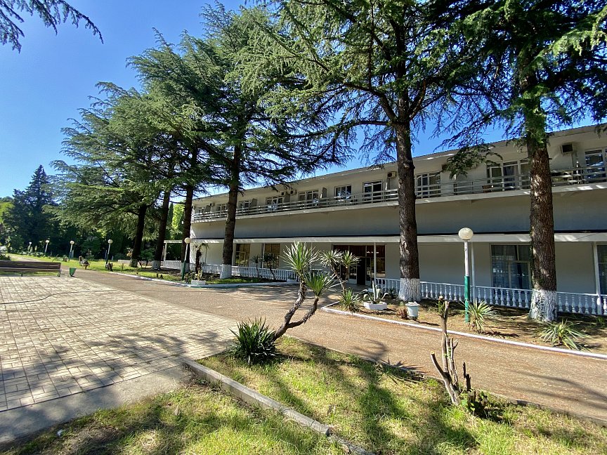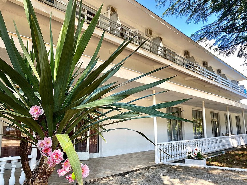 Отдыхала 2 недели в августе, все просто супер!!!!! Сбалансированное 3-х разовое питание: здоровый завтрак, обед из 3х блюд, легкий и полезный ужин! Похудела на 2,4 кг,вернувшись домой, потому что здоровое и полезное питание, подтянула фигуру, очень довольна))) В номере все есть для комфортного проживания: туалет, душ, вся необходимая мебель, телевизор,холодильник, балкон с видом на горы (у меня был)…Утюг, стиральная машина -на этаже: ну мы же сюда не гладить и стирать приехали) Номера убирают постоянно, всегда есть чистые полотенца, постельное белье, необходимая бытовая парфюмерия! Пляж -просто обалденный: народу очень мало, нет такой толкучки, что "яблоку некуда упасть", что у нас в данный момент твориться в Крыму и на нашем юге! Чувствуешь себя свободно и комфортно! Ближайшие отдыхающие на расстоянии 15-20 метров от тебя! Персонал - отзывчивый и легкий, всегда готовы помочь организовать экскурсии, выезд до границы в банкомат и решить любой другой вопрос! Спасибо вам, ребята, всем огромное!!! Через дорогу от пансионата -кафе "PATZCHA", каждый вечер с 18.00 живая музыка, зажигательная дискотека, изумительное домашнее вино, блюда национальной абхазской и грузинской кухни! Чистое звездное небо, легкий морской бриз с моря, отличное настроение… И в заключении, хочу сказать, что за 1500,00 рублей в день с питанием и проживанием - это лучшее место, где я отдыхала! И зависит все, на самом деле, с каким вы настроением приехали, если понегативить, то вы так и будете отдыхать - постоянно на негативе! Скажу за себя - приехала с обалденным настроением на отдых - все было для меня настолько замечательно - уезжать не хотелось - сейчас бодра и полна сил - буду еще долго вспоминать свой незабываемый отдых!!!