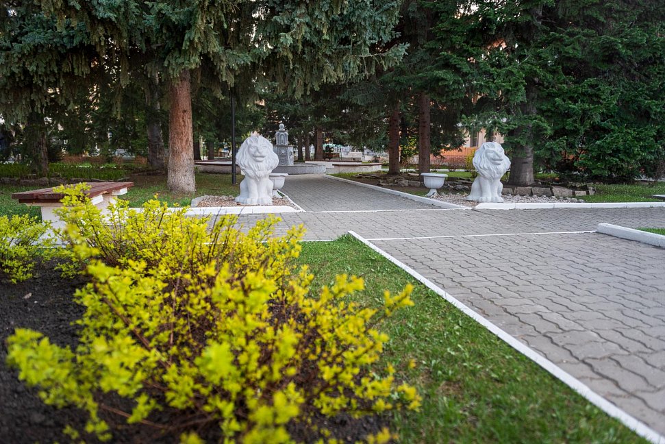 Территория санатория "Центросоюза" в Белокурихе прекрасно благоустроена: здесь можно прогуляться по живописным тропинкам, посетить спортивные и детские площадки, отдохнуть у воды. Также в распоряжении гостей работает ресторан с великолепной кухней, где подают блюда местной и европейской кулинарной традиции.