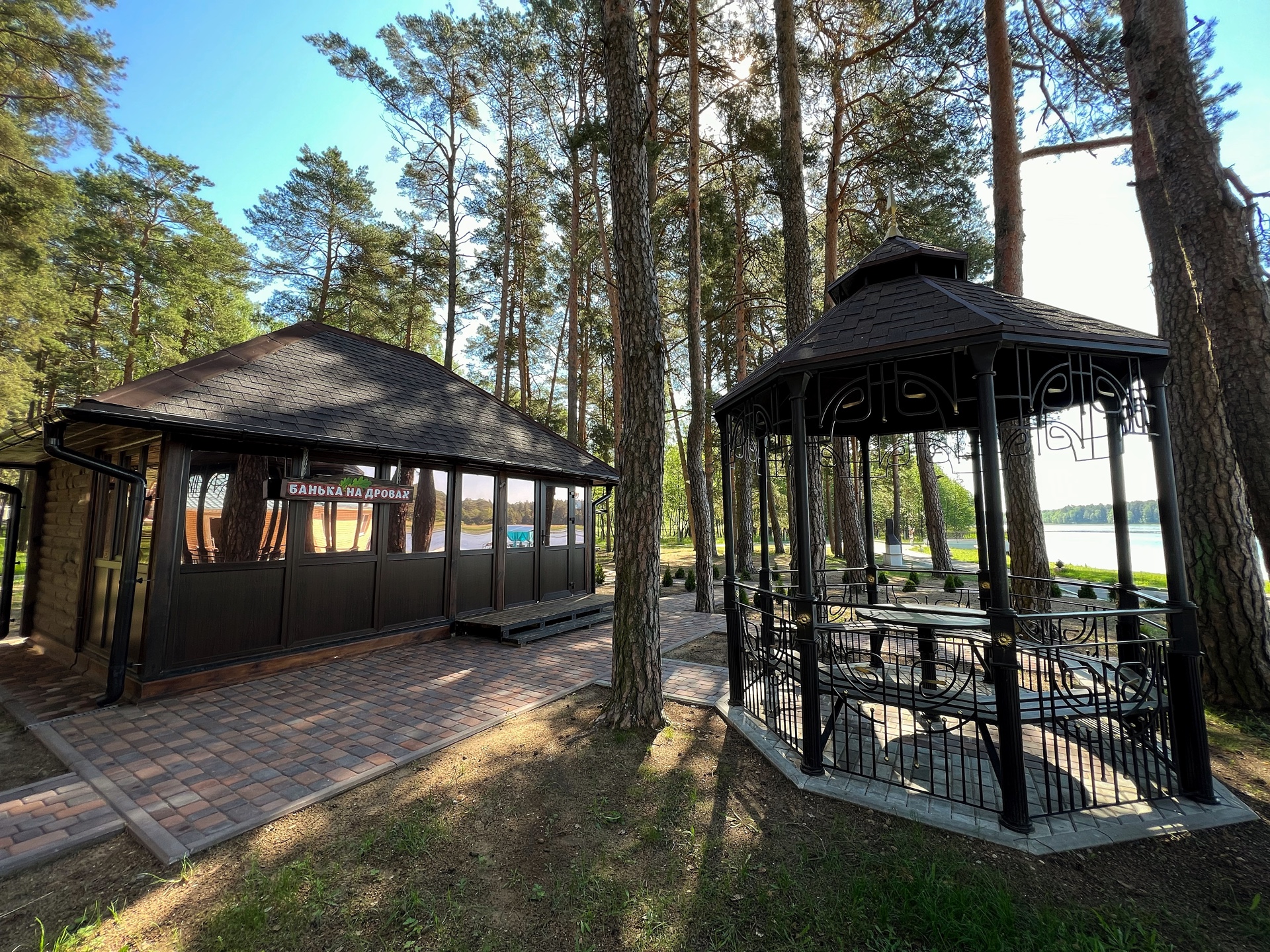 - баня на дровах расположена непосредственно на берегу красивейшего озера.