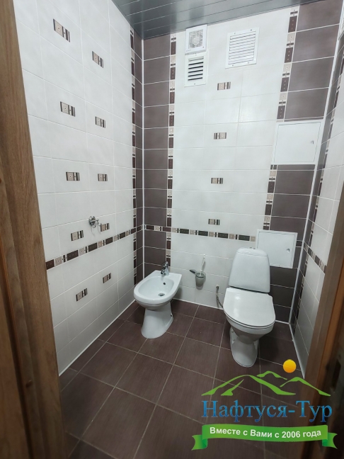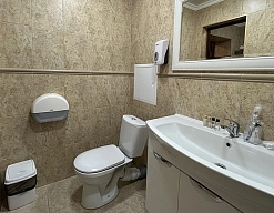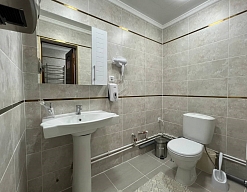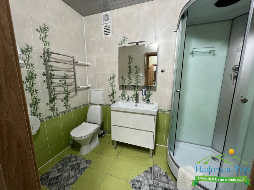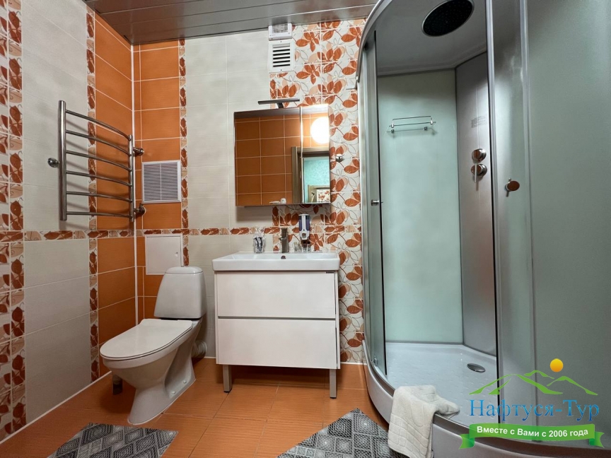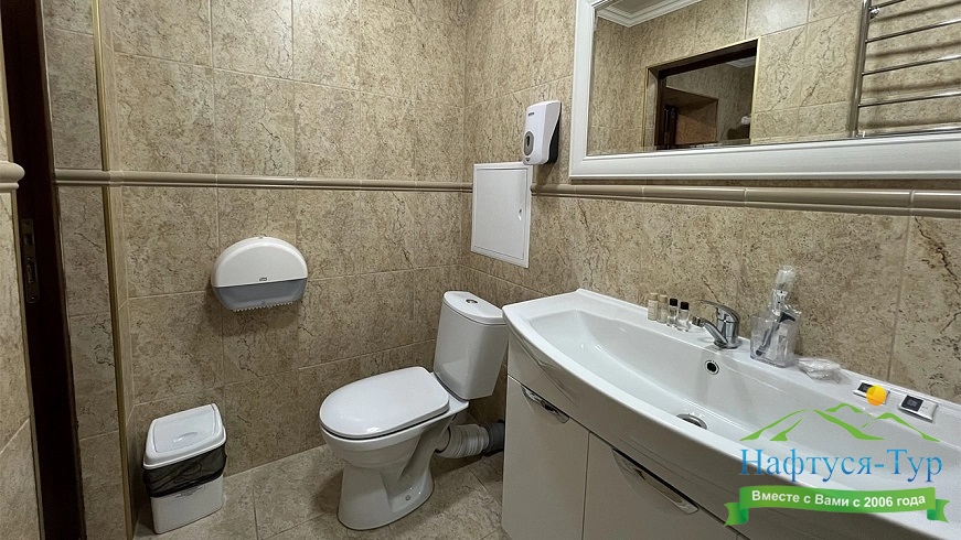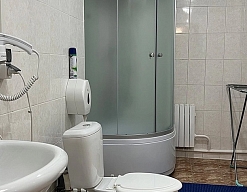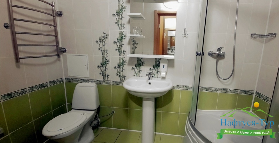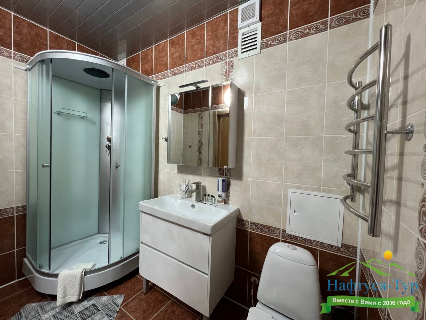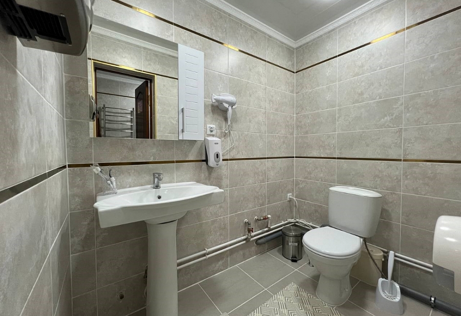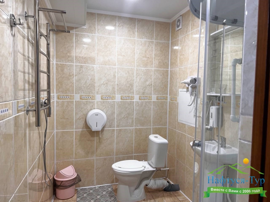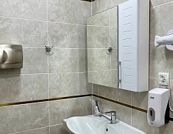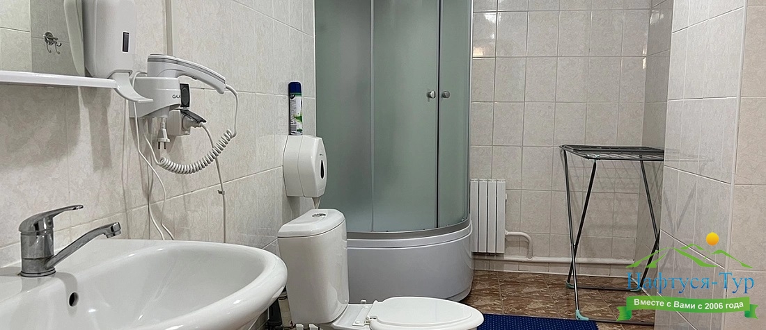 с душем (поддон), туалетные принадлежности, фен