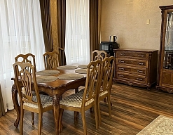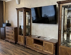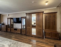 диван раскладной, зеркало, кровать полутороспальная, прикроватные тумбочки, стол, стулья, тумба, шкаф