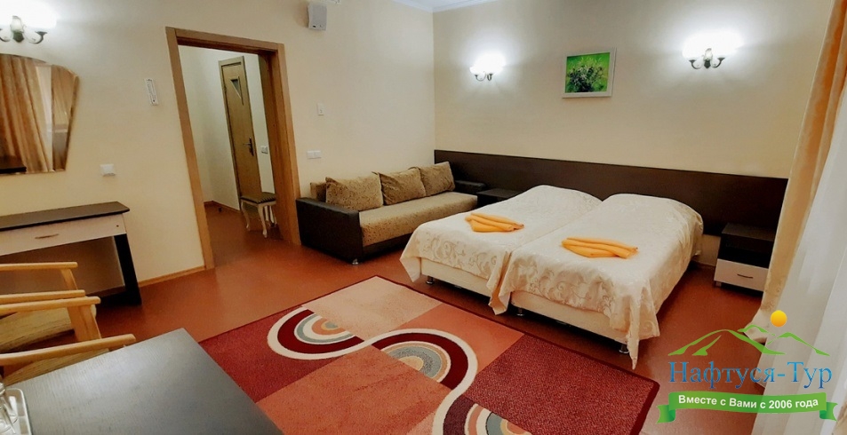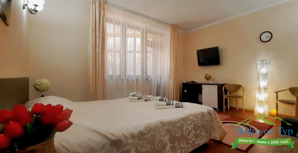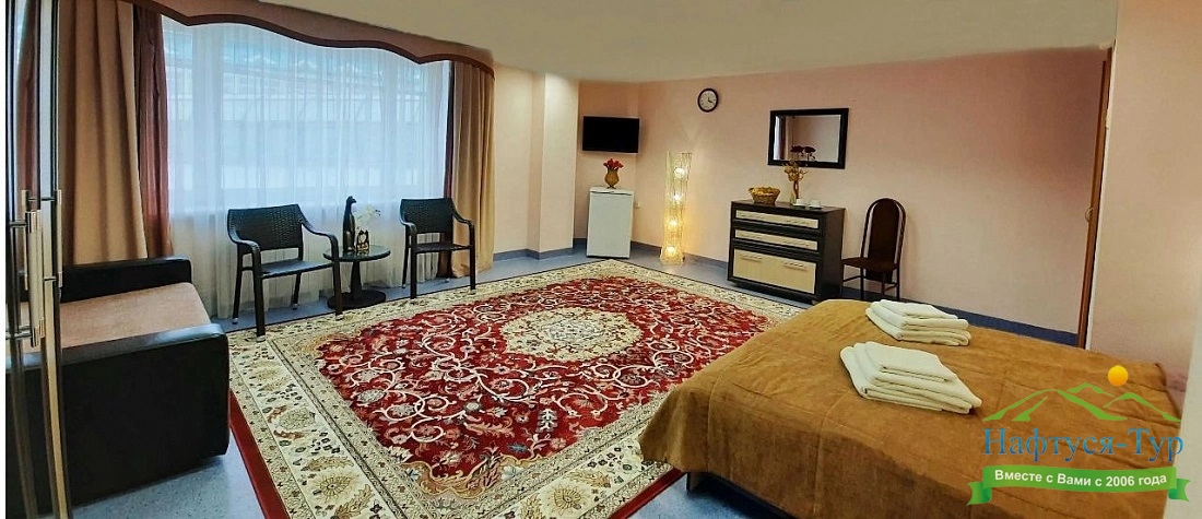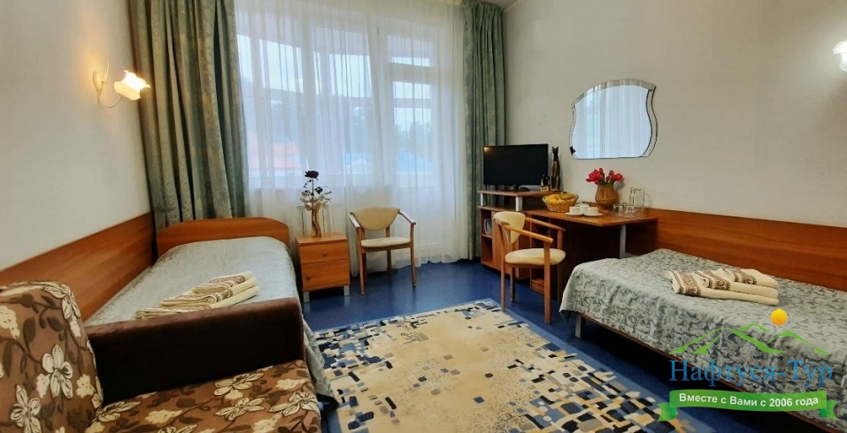 Гостям предлагаются современные номера различных категорий — от стандартных до повышенной комфортности и люксов. В стоимость путёвки входит 4–5-разовое диетическое питание с возможностью выбора меню, что способствует эффективному восстановлению организма. :contentReference[oaicite:4]{index=4}