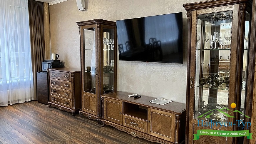 кондиционер, микроволновая печь, набор посуды, сейф, телевизор ЖК, холодильник, электрочайник