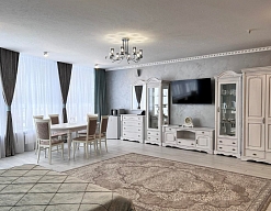 вешалка, зеркало, кровать полутороспальная, набор мягкой мебели, прикроватные тумбочки, стол, стулья, тумба, шкаф