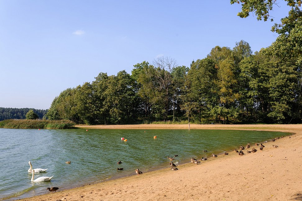 - находится в смешанном лесу на берегу озера Белое