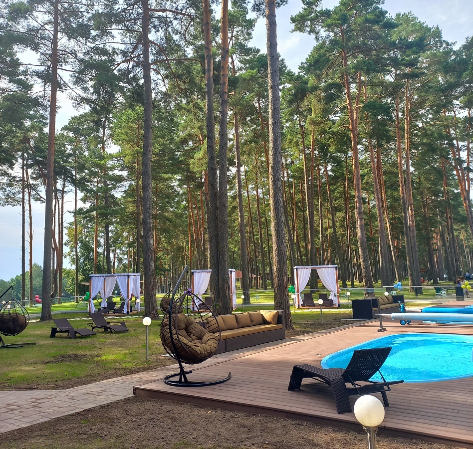 Территория санатория расположена в сосновом бору рядом с Солигорским водохранилищем.