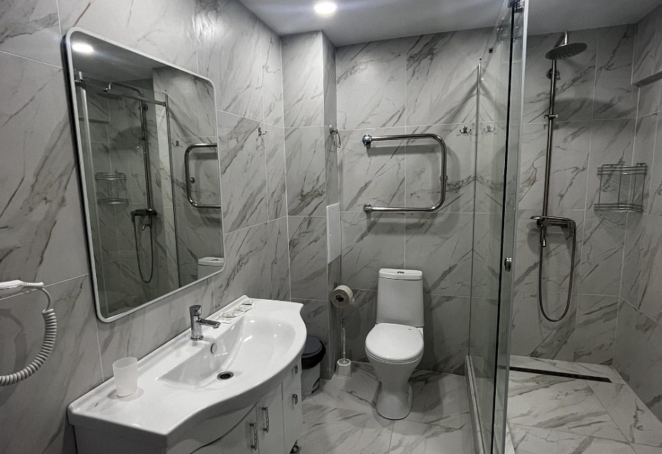 с ванной или душевой кабиной, туалетные принадлежности