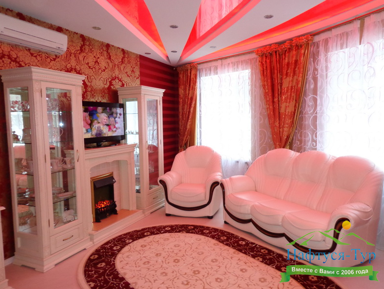 камин, кондиционер, микроволновая печь, набор посуды, телевизор, холодильник, электрочайник