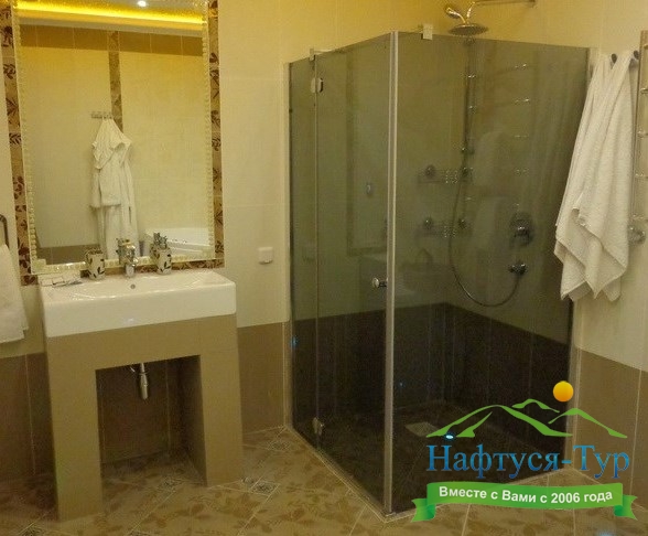 с джакузи, с душем, тапочки, фен, халат