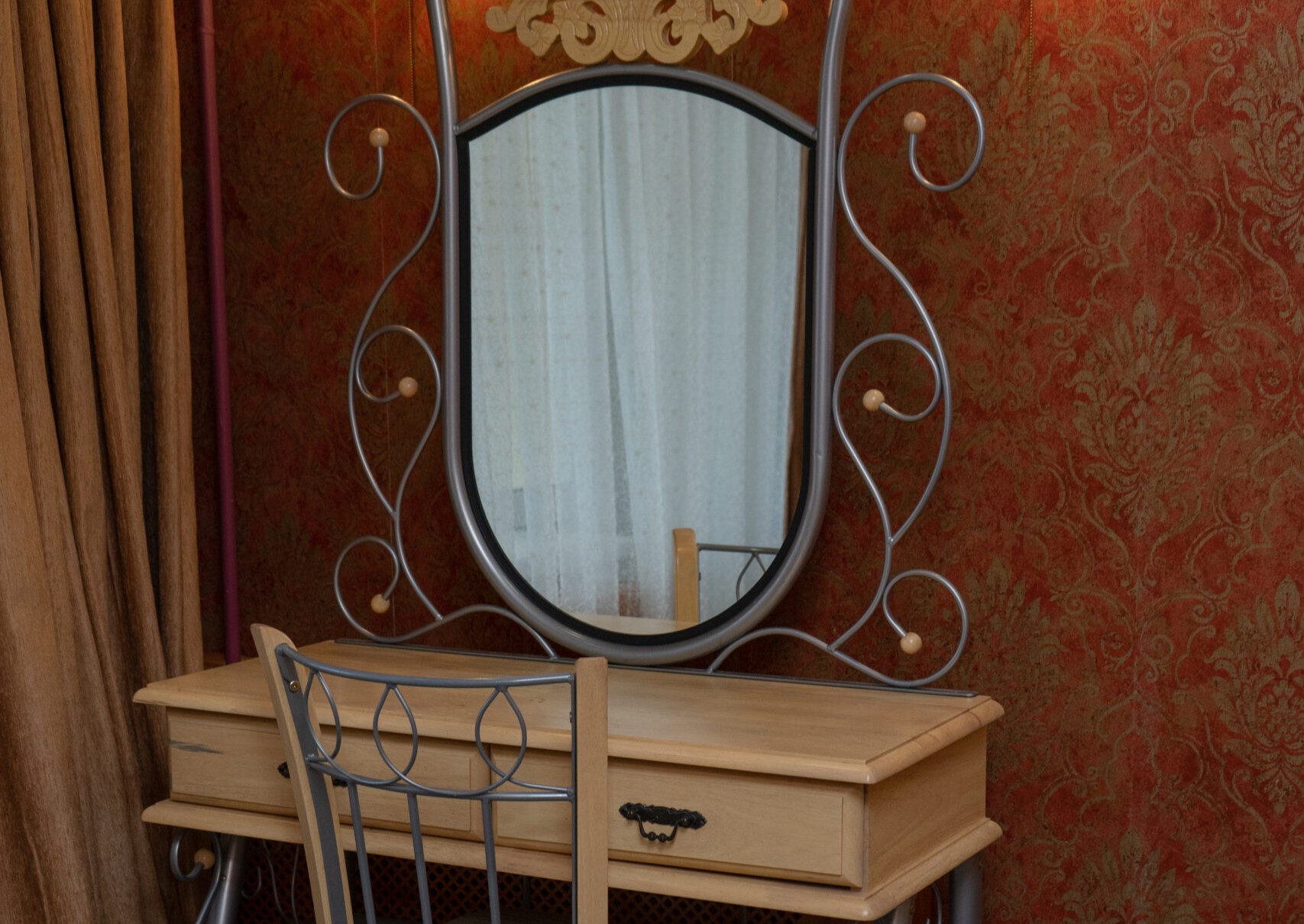 диван раскладной, зеркало, кресло-кровать, кровать двуспальная, прикроватные тумбочки, столик журнальный, шкаф