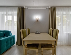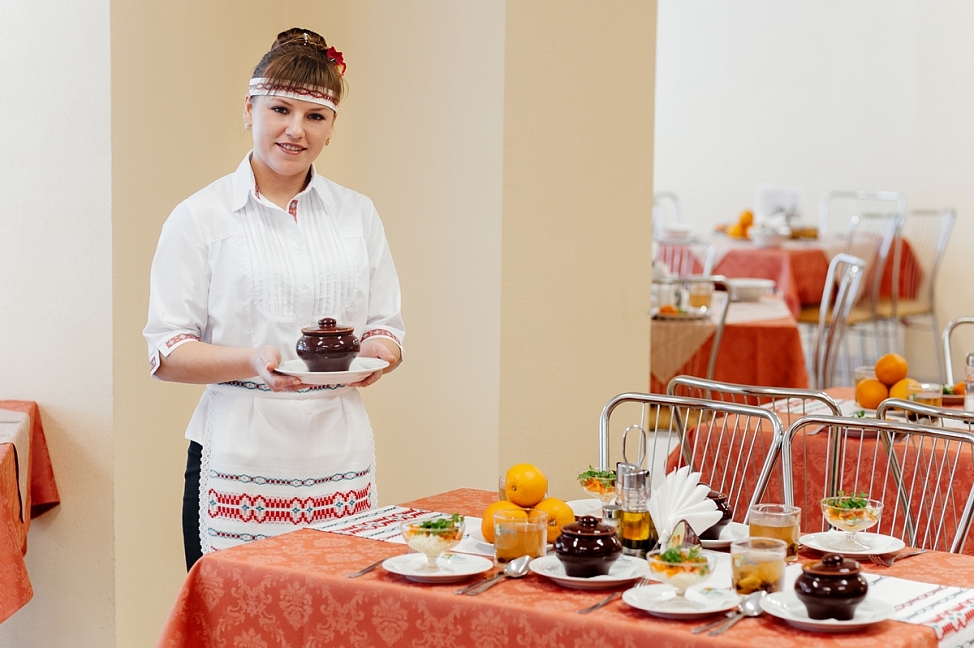 Формат организации питания показался несколько устаревшим, было ощущение, что находишься в советской столовой. Недостатком это назвать нельзя, так как еда свежая, качественная, обильная. В советских столовых хорошо кормили. Т.е. немного старомодно, возможно, это соответствует стандартам санатория.