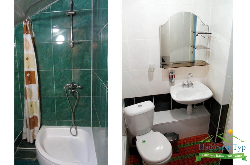 с душем (поддон), туалетные принадлежности