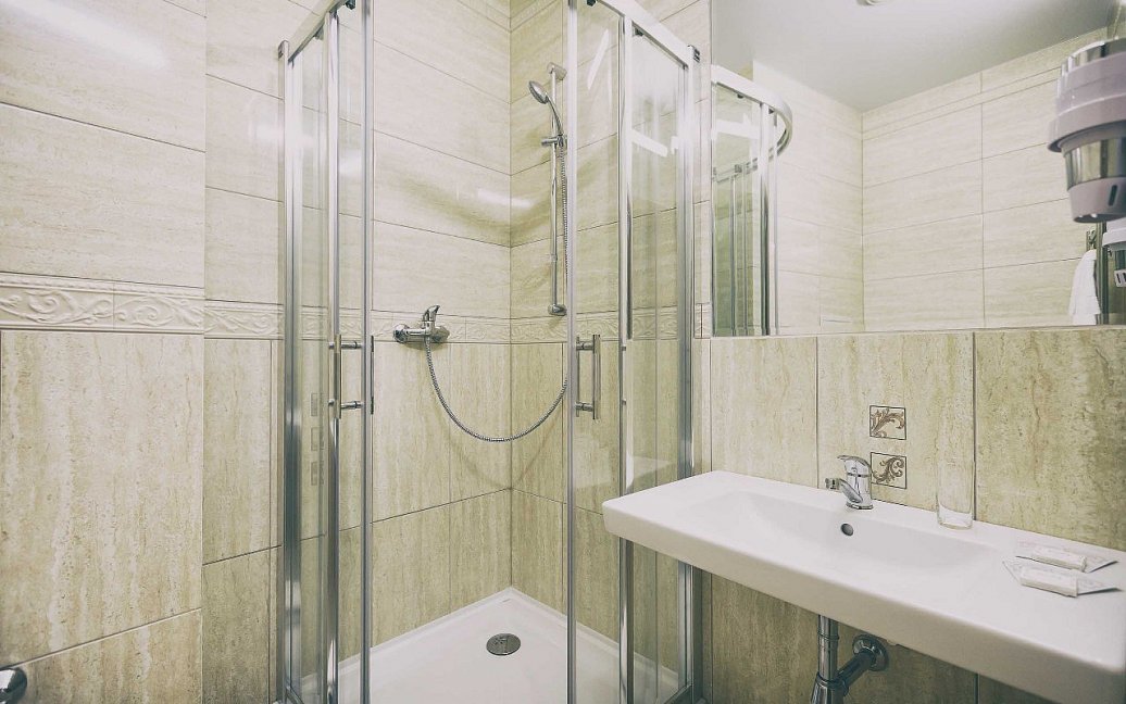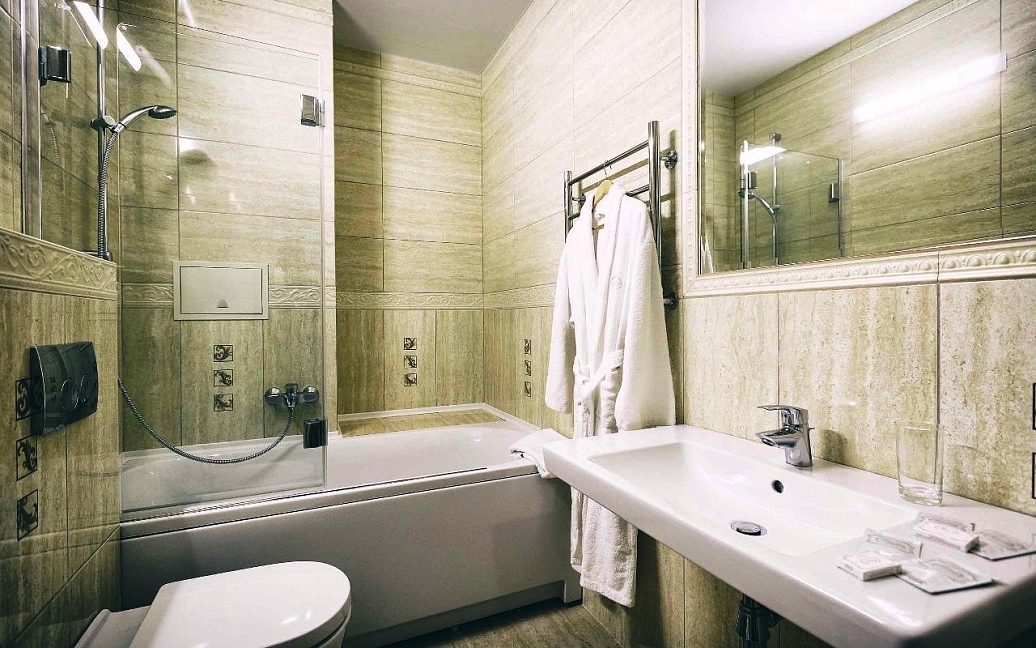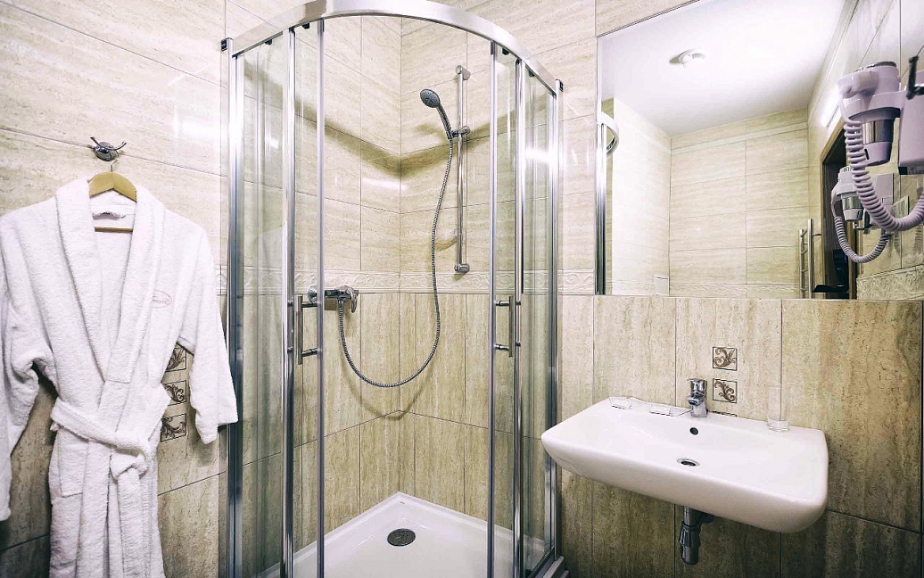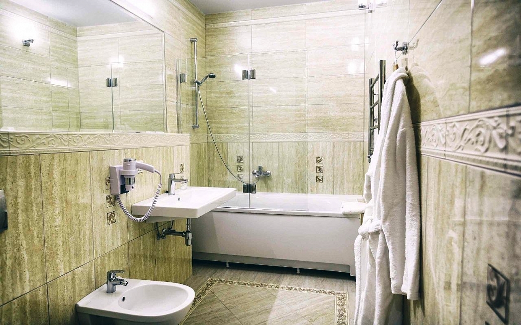 душевая кабина,набор полотенец,фен,косметический набор