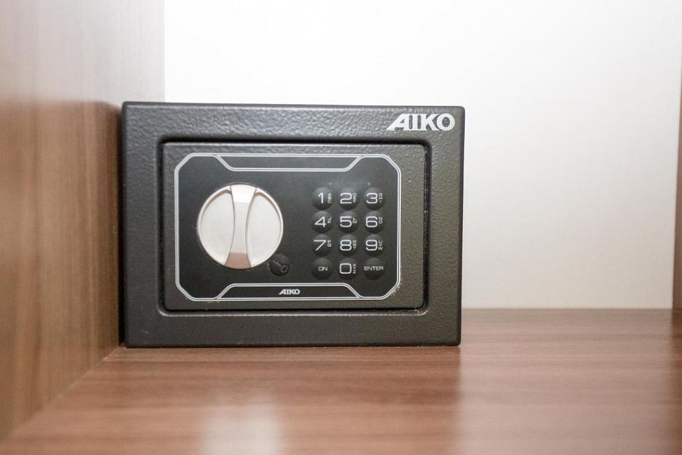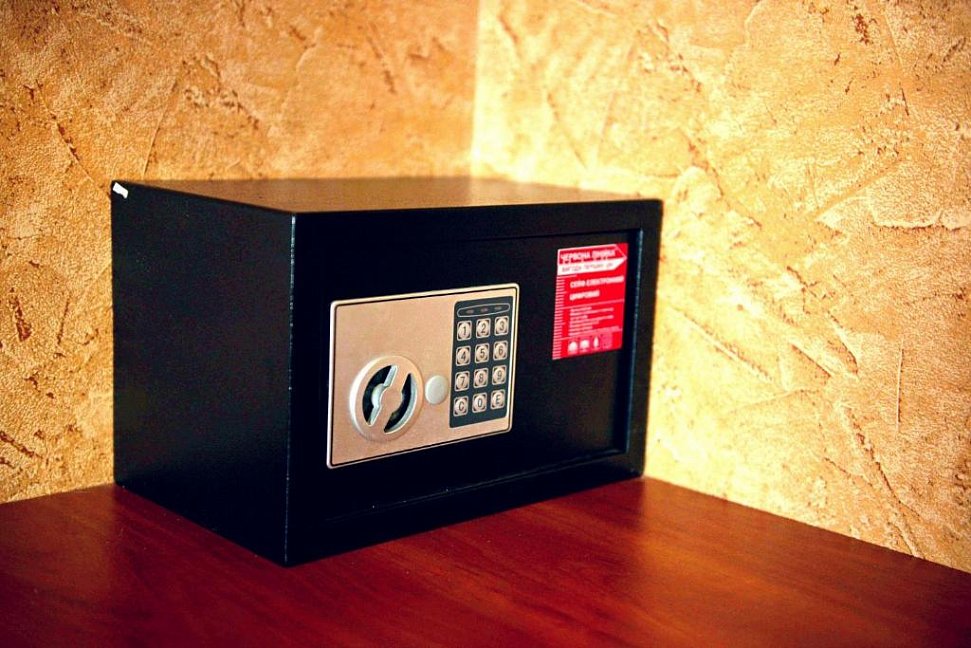 кондиционер, сейф, телефон, холодильник, чайный набор посуды, электрочайник