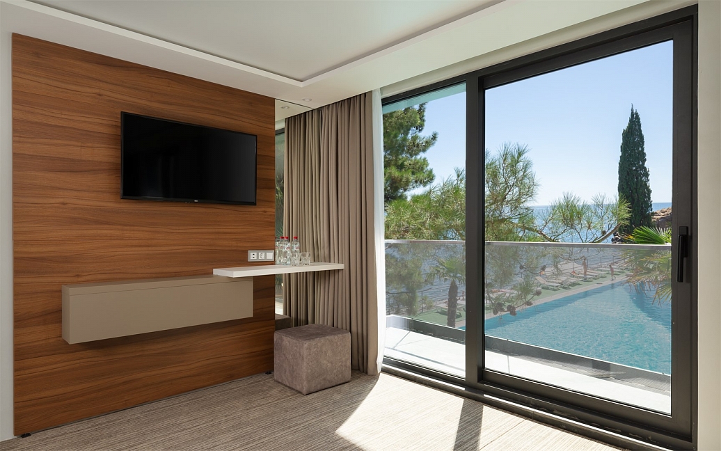 Расположение: Первая линия у моря (50 м до пляжа), 27 м до центра Алушты, 82 км до аэропорта Симферополь