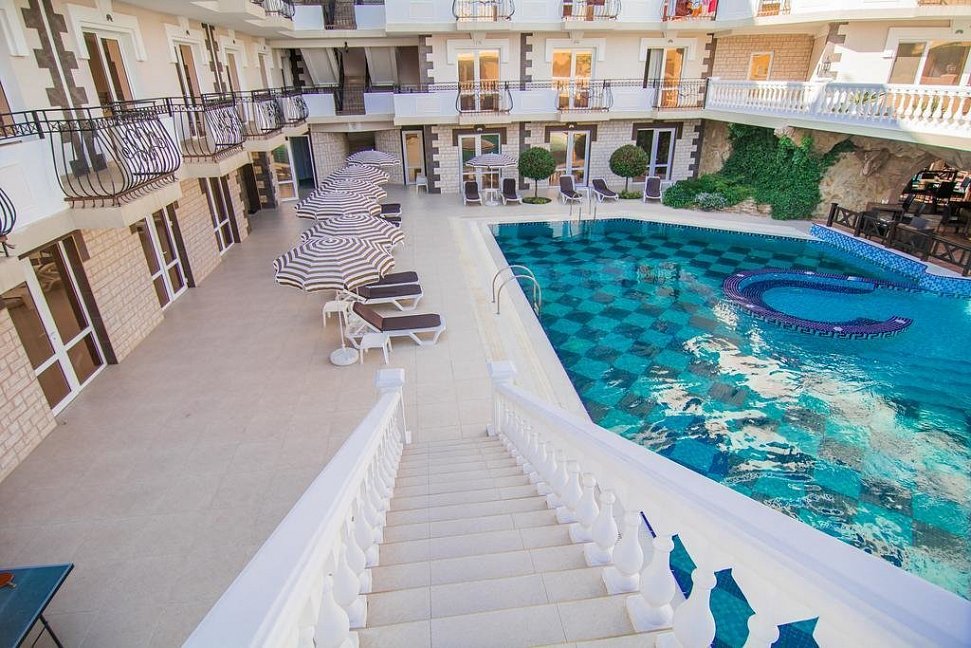 Выбрали отель по рекомендации менеджера Юли в фирме Нафтуся Тур-и не пожалели. Очень уютный и красивый отель. Ощущение домашнего отеля, где вас принимают как дорого гостя, и всячески стараются, чтобы вам было хорошо и комфортно. Удобное расположение, чистое море, галечный пляж. Заботливое и в то же время ненавязчивое отношение персонала к гостям.
