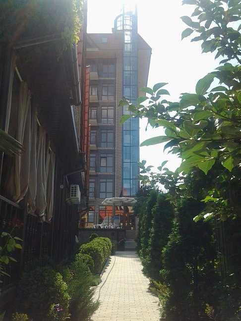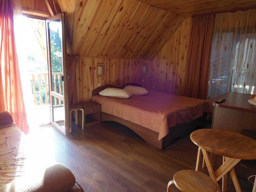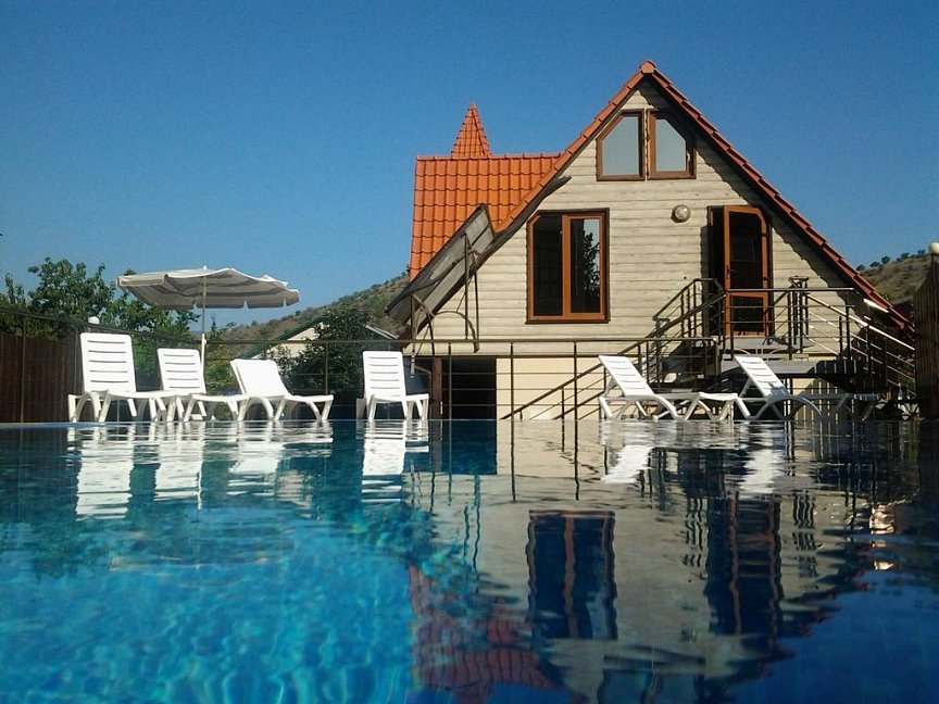 Отель "Лучистая" расположен в 200 метрах от пляжа на берегу Черного моря в поселке Рыбачье.