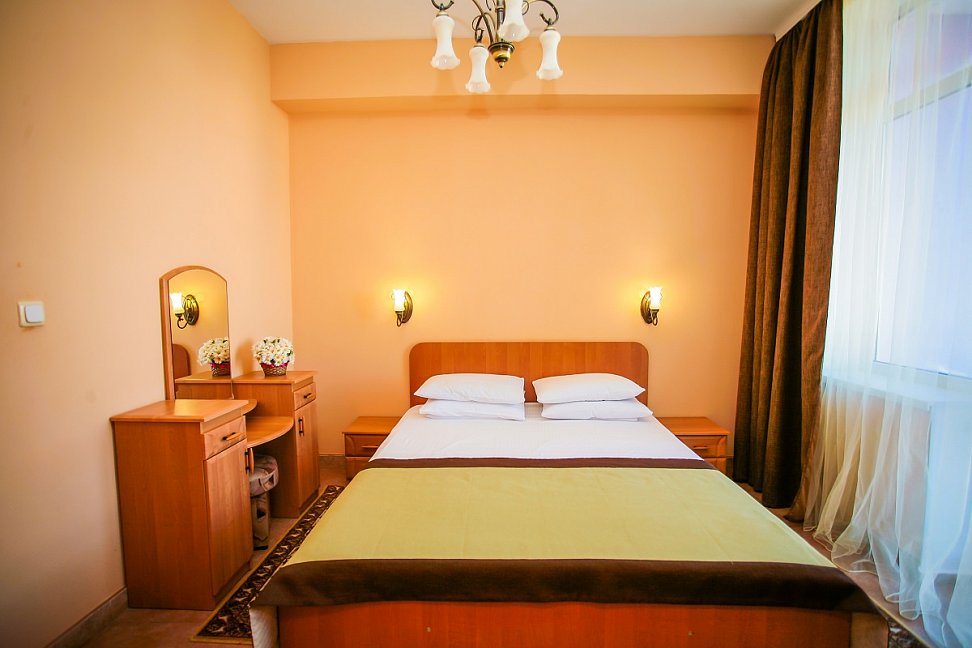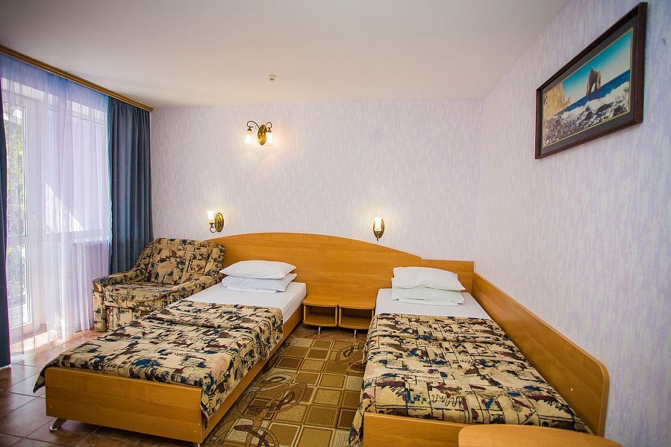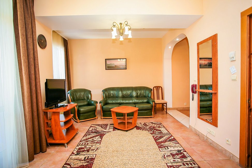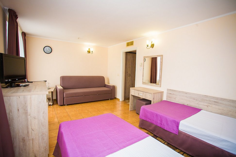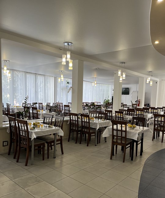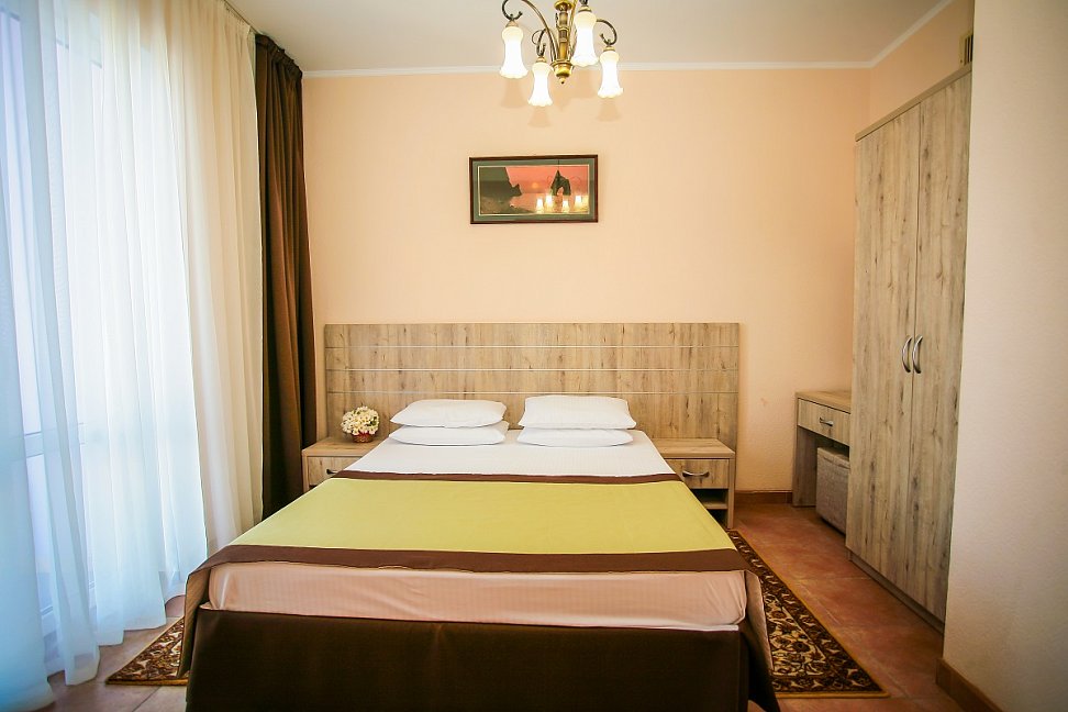 Мы были в этом пансионате с 2.01 по 9.01. 2016г. Первое впечатление, нас встретил администратор с фингалами и разбитым носом, поэтому с двумя тампонами в носу. Полулюкс из двух комнат это вообще нечто, хочешь посмотреть вечером телевизор сиди на замызганном диванчике, хочешь переодеться в коридор. Отопление только через кондиционер (а если учесть обстановку с электричеством "веерное отключение" в любое время отключается и на неопределенный срок), а также вырубается горячая вода. Бассейн с подогревом (специально выбирали) 23 градуса температура воды, раздевалки убогие нет ни зеркала, ни фена. В номере тоже нет фена, собираешься мыть голову иди проси у администратора. В общем все на уровне 80-х. А столовая отдельная песня, обслуживающий персонал накладывает себе и принимает пищу вместе с проживающими (только на кухне), поэтому на замечание что нет чашек ( блюдец мы так ни разу и не увидели)отвечали мол мы не виноваты что некоторые выпивают по несколько чашек ( хотя из посетителей было меньше десятка). На завтрак даже к кофе не могли поставить молока, машина еще не приехала. Если бы мы приехали своим транспортом, то уехали бы раньше как многие делали. Понятно проблемы со светом не их вина, но внимание и забота, они сидят и ждут что к ним все поедут и будут рады такому сервису( в принципе я человек не избалованный, но хотелось бы за свои деньги получить элементарные услуги - чай черный или зеленый на выбор, молоко к кофе, одеяло заправленное в пододеяльник, тепло, фен в полулюксе, телевизор посмотреть лежа и т. д.) . Администрация хотя бы принесла извинения за не полностью оказанный пакет услуг.