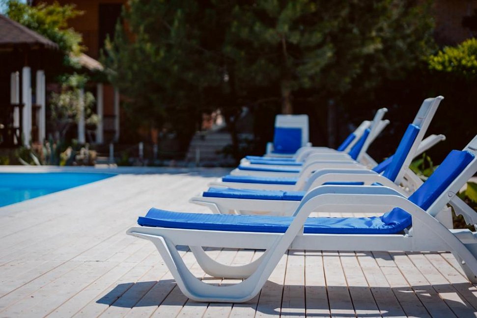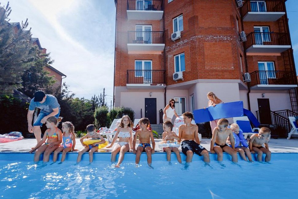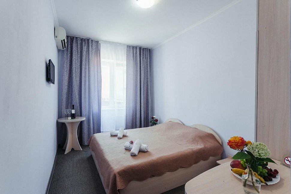 Отдыхали в "Бригантине" две недели. Месторасположение тихое и спокойное в посёлке Береговое. Номер нам достался прекрасный, без вида на море, но мы не расстроились.