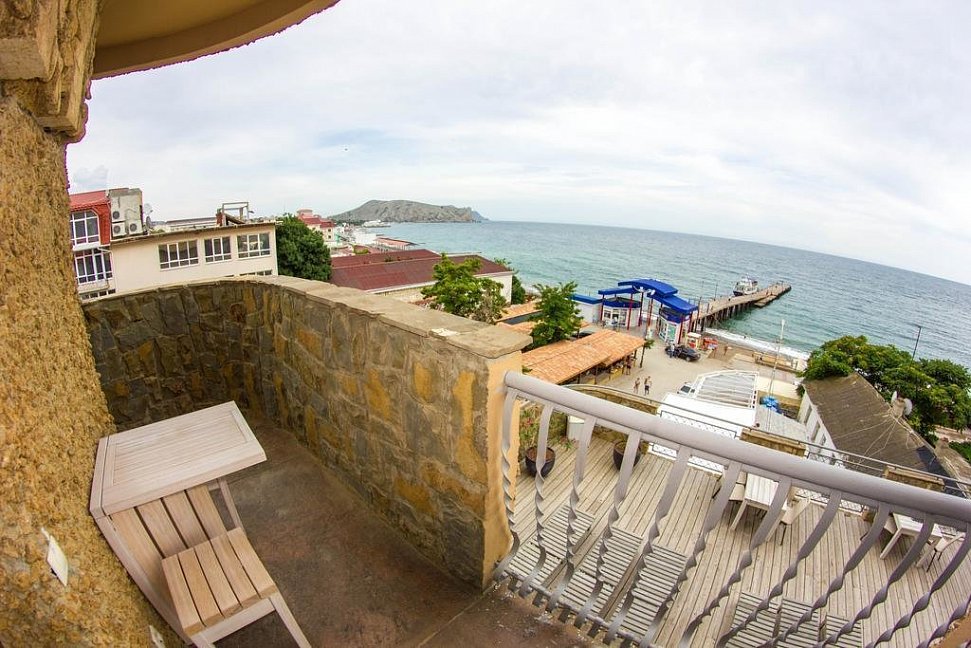 С балкона номеров открывается прекрасный вид на просторы Черного моря, живописные Крымские горы и неповторимую Генуэзскую крепость.
