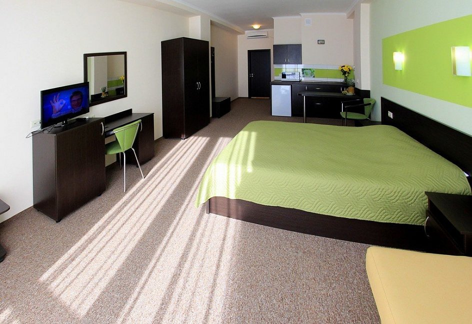 Симпатичный отельчик в Судаке. Приемлемая цена для такого уровня, чудесный, грамотный персонал, чистота и порядок поддерживается постоянно и везде. Самое главное море в двух шагах. Номер был на втором этаже с видом на море. Убирались каждые два дня, причём тщательно. Сам номер действительно большой, в нём удобно передвигаться. Помимо этого есть в наличие всё, что необходимо для комфортного проживания. Питались мы в кафе, кормят прилично и не дороже чем в ближайших забегаловках. Персонал отзывчивый, гостеприимный и добродушный, умеет находить общий язык с постояльцами и угождать во всём. По Набережной очень много кафешек и ресторанов, магазины и аптеки, всё рядом. Хочется сказать руководству и персоналу отеля большое спасибо. Время пролетело очень быстро. Надеемся, что вернёмся сюда ещё!!! Будем советовать это место всем знакомым и родственникам!!!