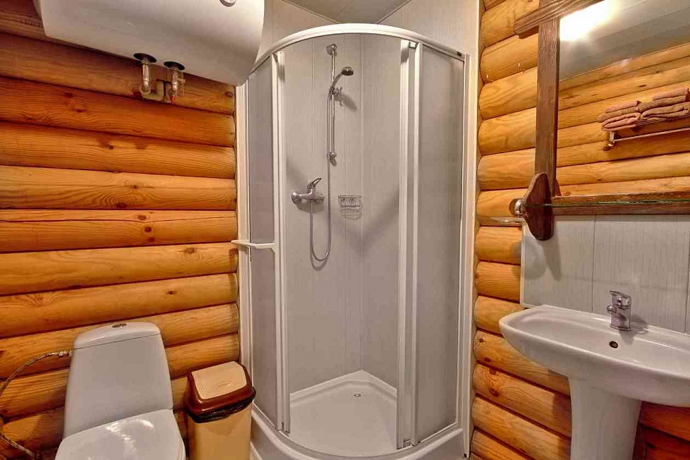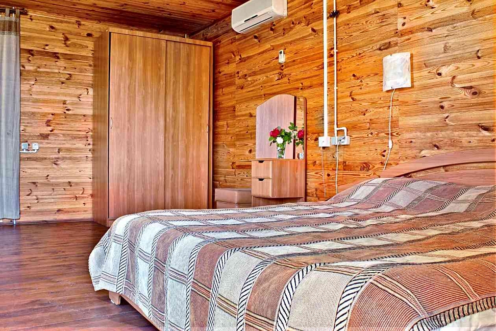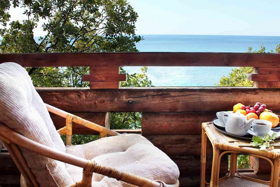 Уютные домики из деревянного сруба. Некоторые с видом на море. Расположены прямо среди красивых деревьев. Море в 3-х минутах ходьбы.