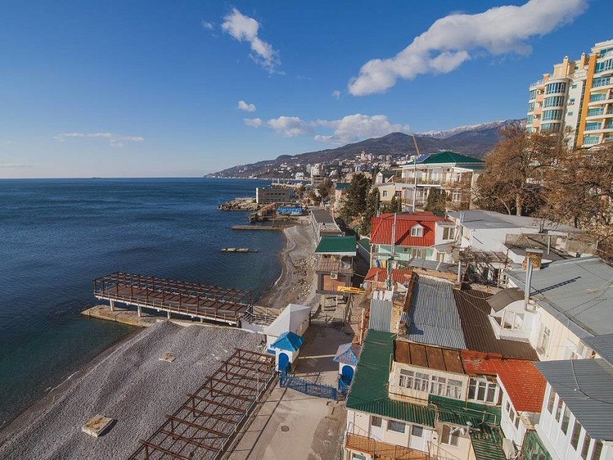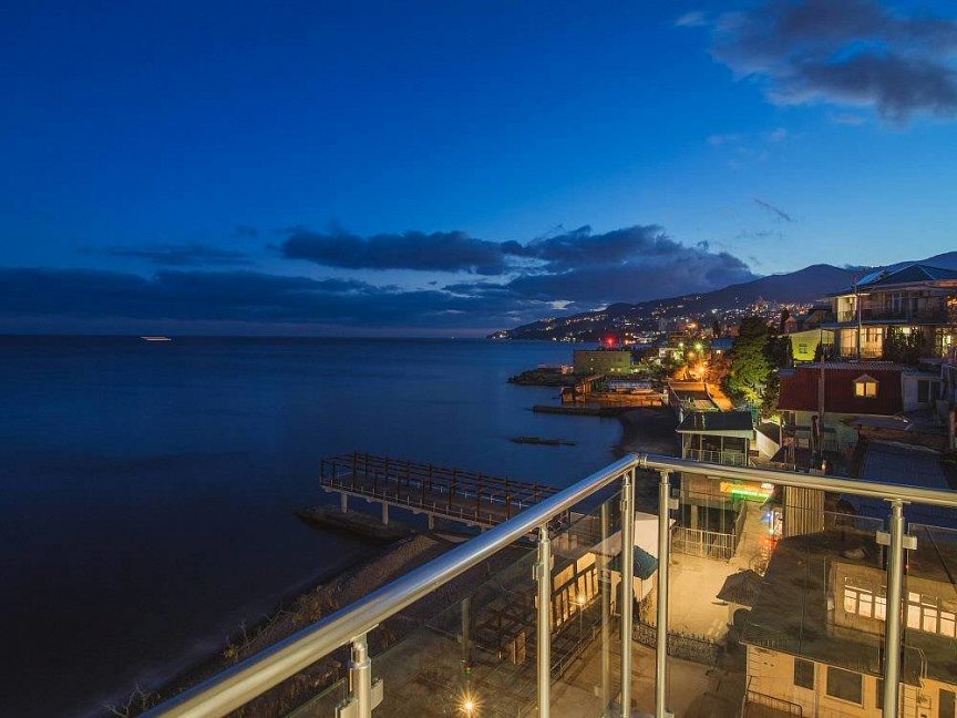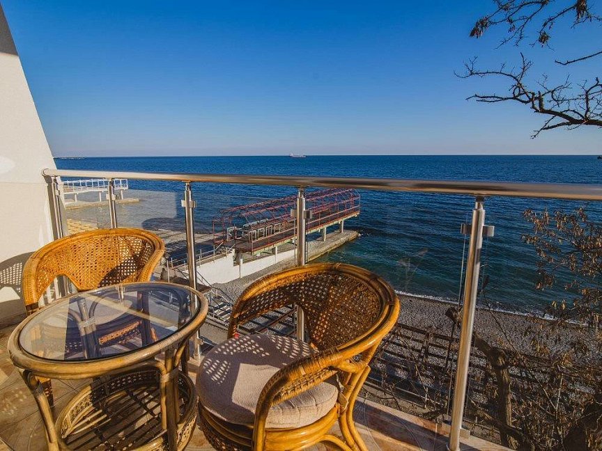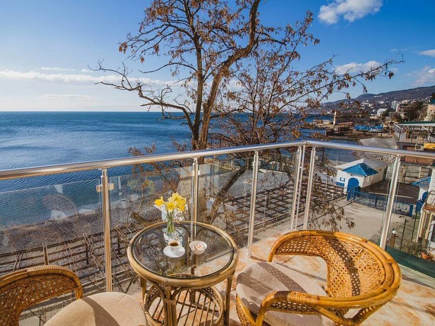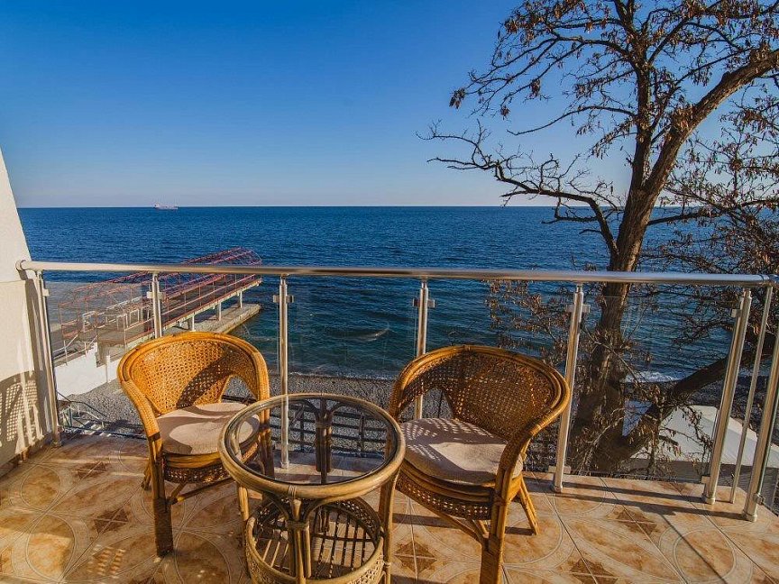 Расположение: Первая линия у моря (20 м до пляжа), 300 м до центра, 100 км до аэропорта Симферополь