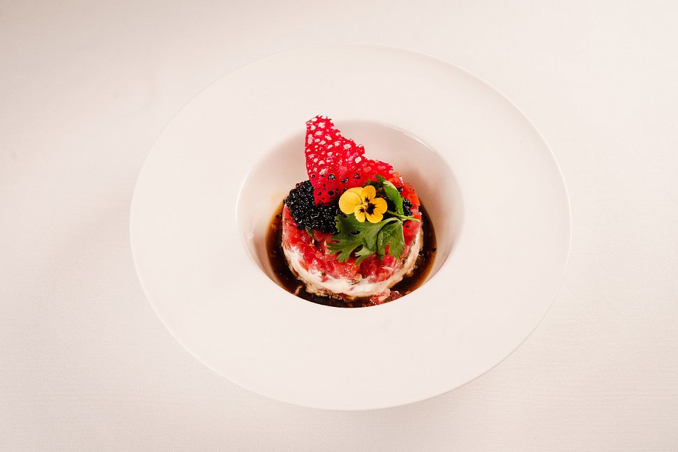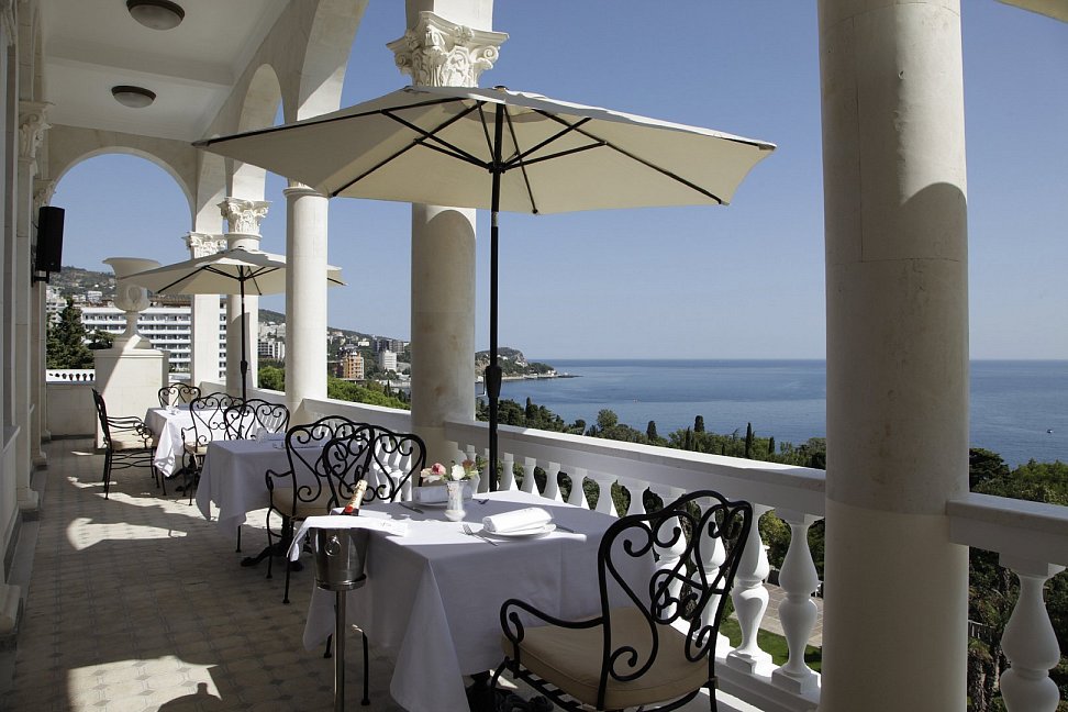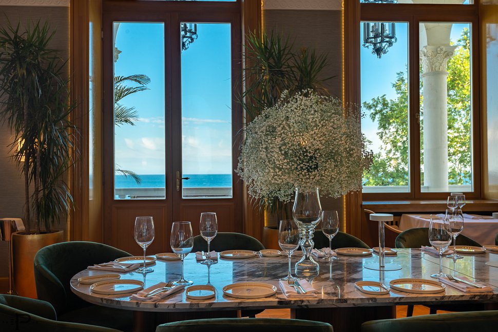 Ресторан «Рахманинов» будто роскошный цветущий сад с видом на Черное море, здесь смело экспериментируют с яркими сочетаниями на кухне, сохраняя локальные гастрономические тенденции.