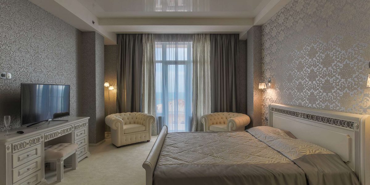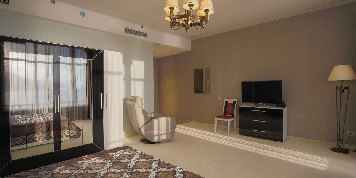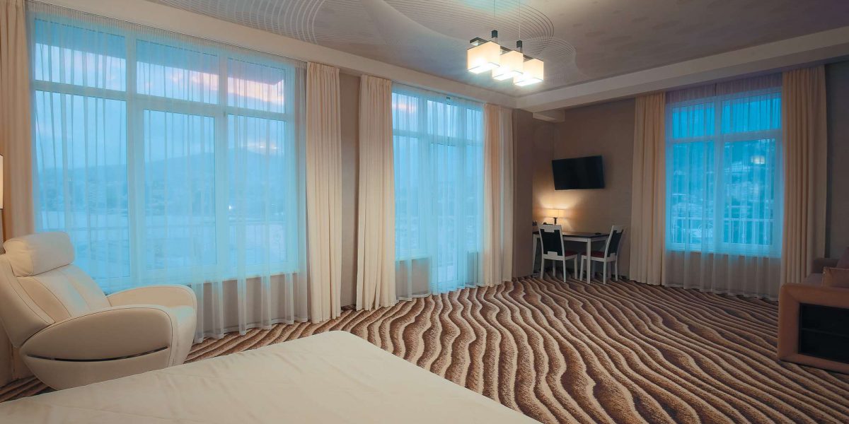 Удобные просторные номера оснащены сейфами, современной сантехникой с гидромассажными ванными, красивой и уютной мебелью.