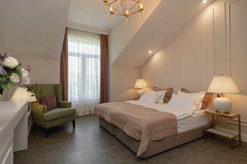 Поездом до ж/д вокзала г. Симферополь, далее на троллейбусе «Аэропорт-Симеиз» до остановки «Пожарка / Музей Амет-Хана Султана», далее пройти пешком 710 м до отеля.