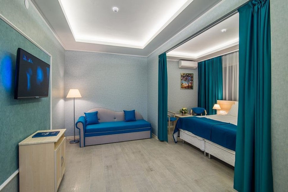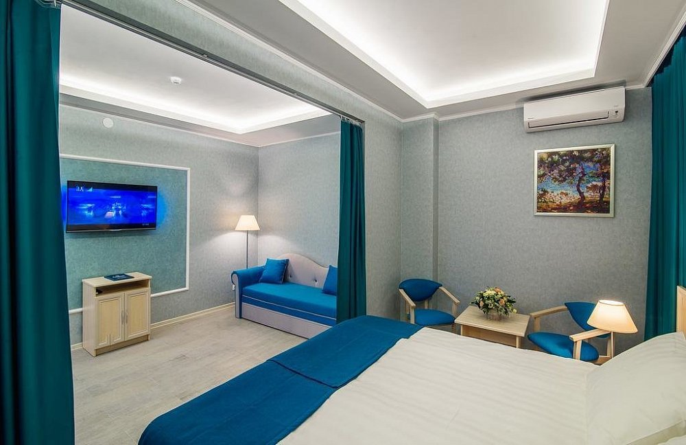 Бронировали отель через туроператора "Нафтуся тур". Встретили нас очень хорошо. Номер выдался просторный, чистый и комфортный. Достойный интерьер, приятно находится. Есть все банные принадлежности. Из окна открывается прекрасный вид на море. Мы отдыхали весной, в номере было тепло (имеется в наличии кондиционер и обогреватель). Завтраки вкусные и разнообразные, и вообще питание хорошее, голодными не останетесь. Понравилась интересная подача блюд. Уборка ежедневная, придраться не к чему. Персонал приятный и вежливый. С радостью поможет в организации времяпрепровождения. До центра 15 минут пешком, либо на маршрутке 5 минут. Есть своя парковка. Отель также привлекателен аквапарком, с несколькими открытыми бассейнами. Положительные стороны в спокойствие и тишине, есть возможность полностью расслабится и наслаждаться отдыхом. Достойное место. Рекомендуем!!!