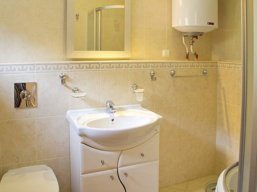 Пляж располагается в пяти минутнах от Виллы оборудован зонтами, лежаками, душем и кабинкой для переодевания.