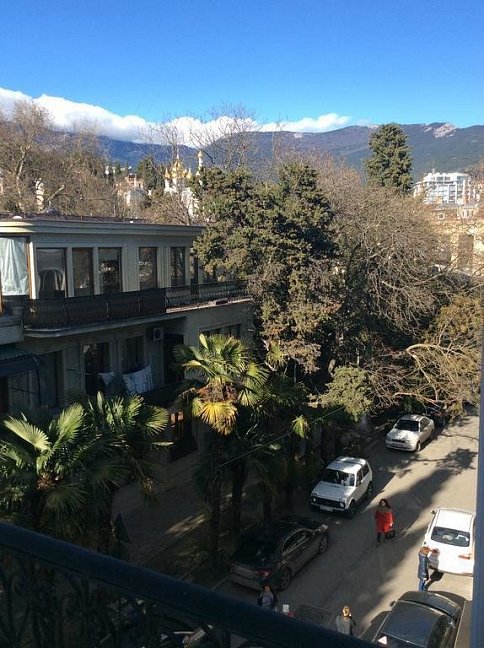 На улице Чехова в тени старых вязов в 100 метрах от центральной набережной Ялты уютно расположилась туристическая гостиница «Палас».