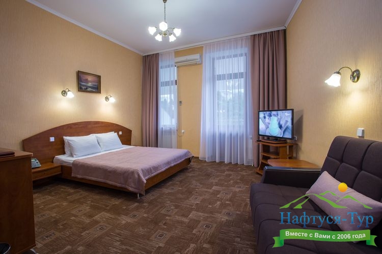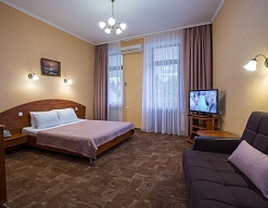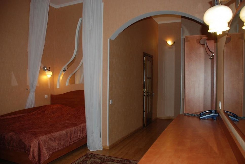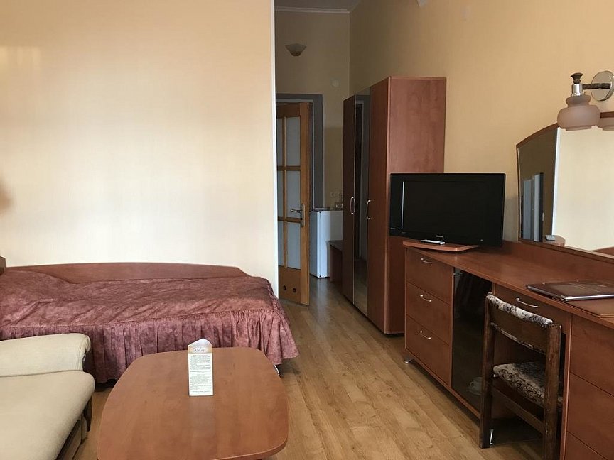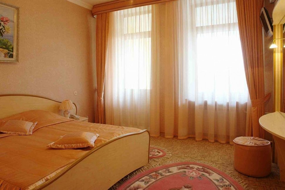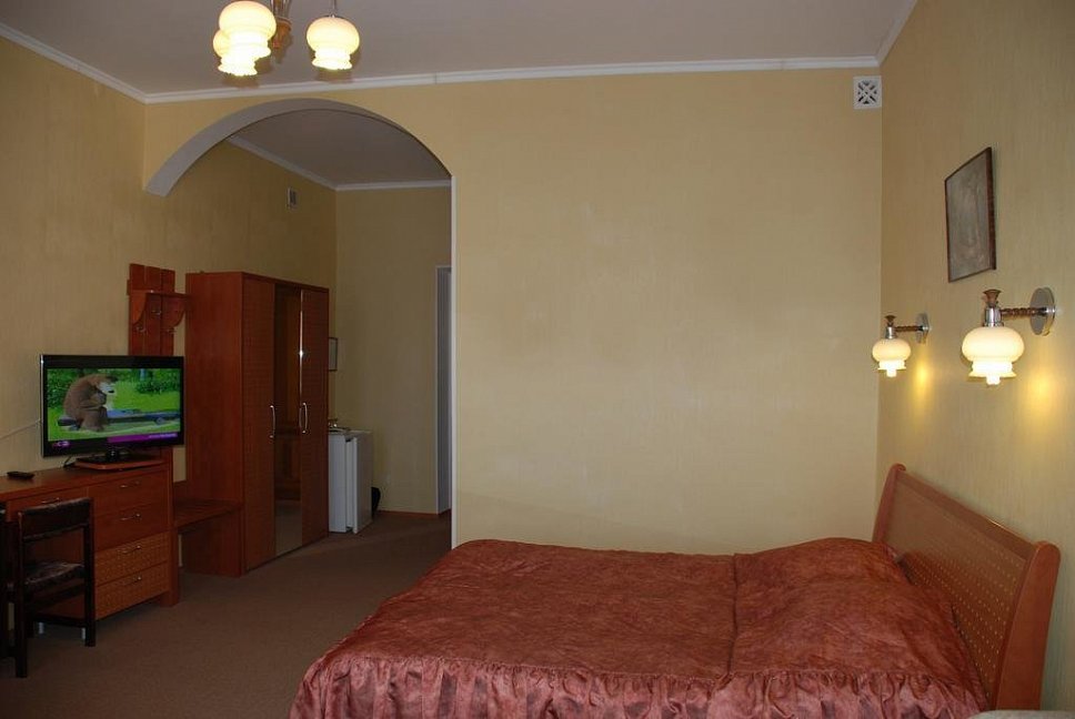 Четырех этажное здание лифтом не оснащено. Номерной фонд располагается со 2 по 4 этажи. В каждом номере санузел с ванной, телевизор, холодильник, кондиционер, телефон, wi-fi доступ в интернет.