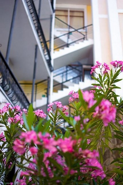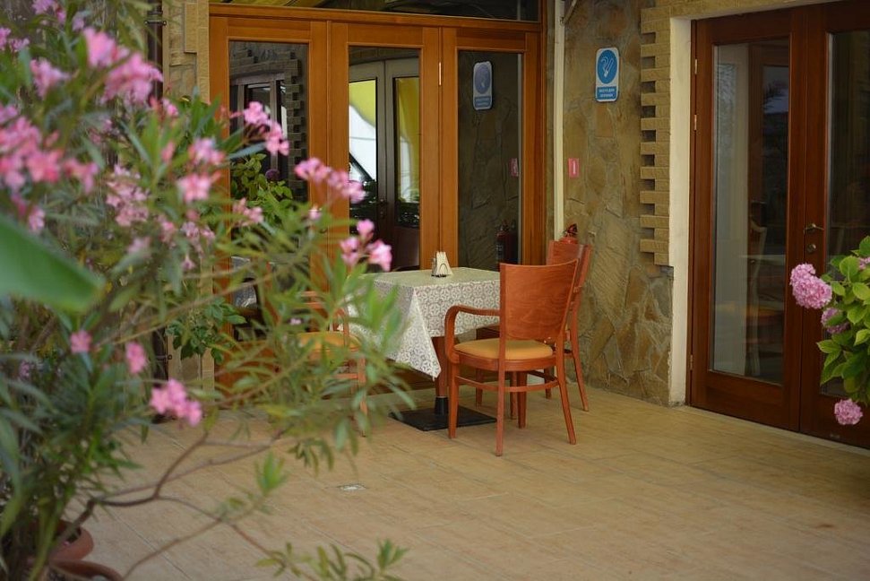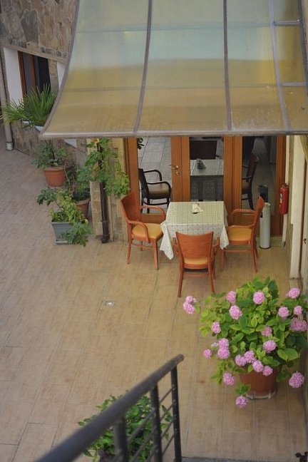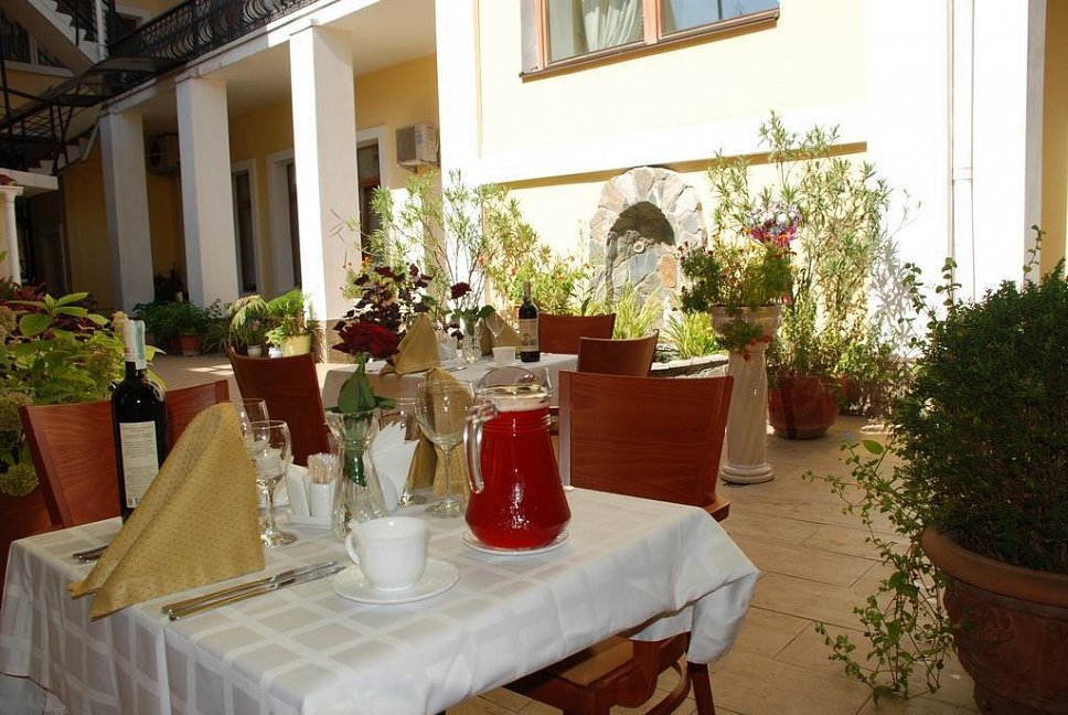 Она занимает здание постройки 1902 года, тщательно отреставрированное и реконструированное. Потолки в номерах около 4 метров. Толстые каменные стены дают летом прохладу, а зимой сохраняют тепло.