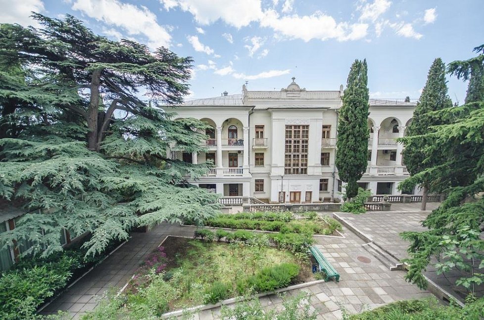 Корпуса расположены в старинном парке среди вековых ливанских кедров, сосен и кипарисов, растут розы, розмарин, канны, кусты жимолости и китайского лимонника, юкка, кактусы и пальмы. Вдоль территории пансионата проходит маршрут ялтинской канатной дороги.