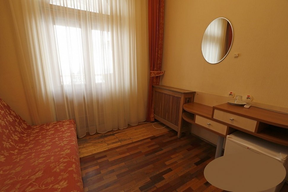 Корпус №1 представляет собой трехэтажный особняк с колоннами, 1957 года постройки, отреставрированный, расположен в центральной части парка. С лоджий южных номеров открывается великолепный вид на водную гладь и маяк. В данном корпусе находятся 2-комнатные номера.