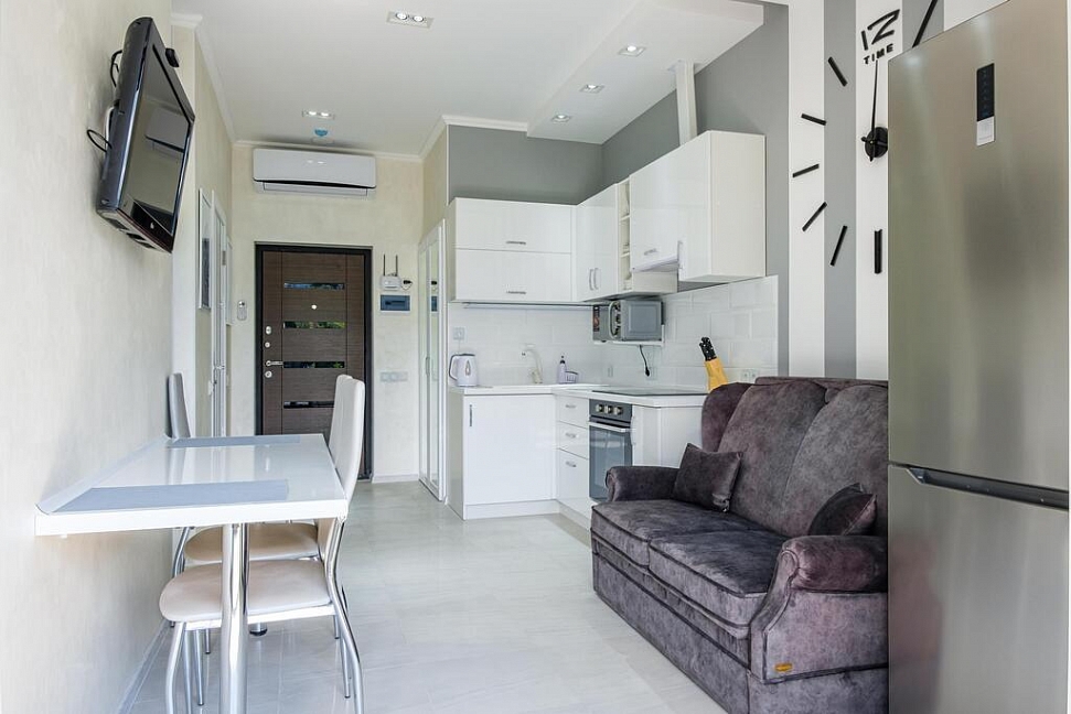 кухня,обеденный стол,чайник,раскладной диван