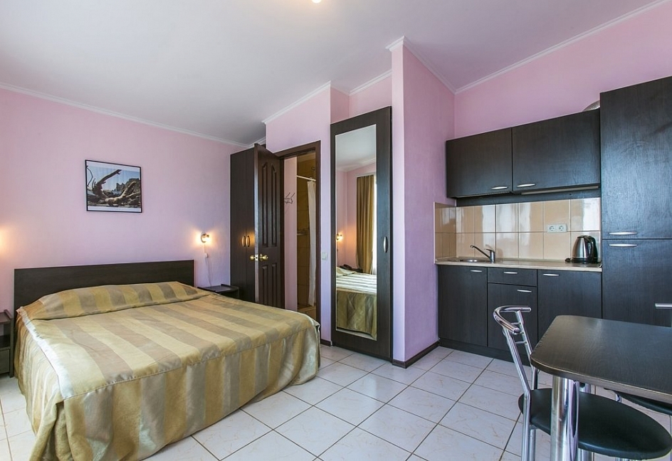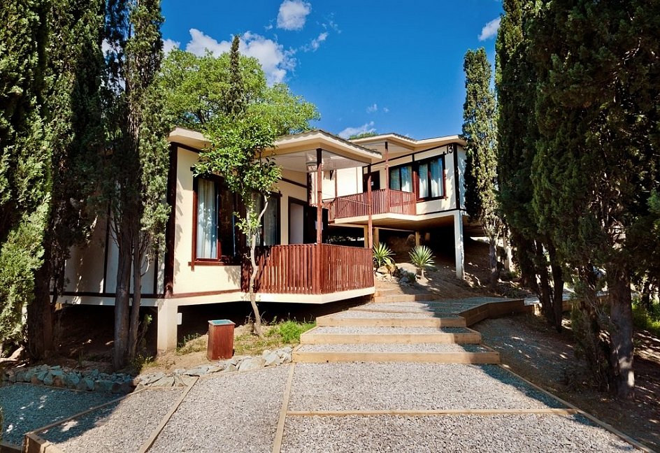 Комплекс имеет очень живописное месторасположение. Мы проживали в двухкомнатном номере на первом этаже домика.