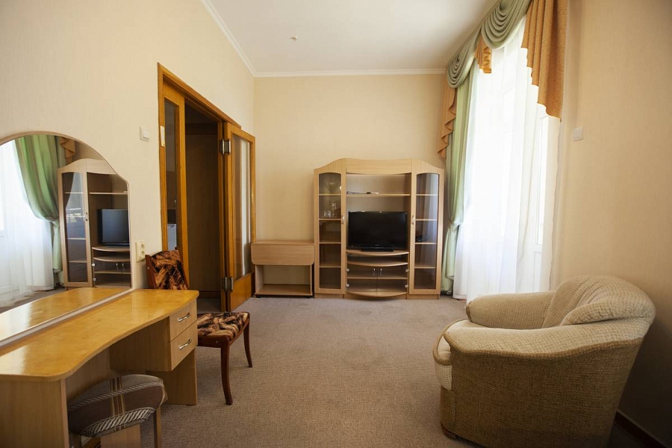 Мне понравилась доброжелательность, открытось работников всех сфер санатория, профессионализм среднего мед.персонала, грамотность врачей санатория, огромная территория, что можно никуда не выходить, анимация для свободного времени отличная, бильярд, теннис большой, настольный спорт инструктор для обучения для этого и еще стрельба из лука, покер и пр., наличие доп услуг(почта, магазин, косметолог, лавки с продукцией, др) на территории плмогает еще больше уходу и лечению в стенах скк, наличие стола заказов экскурсий и культ.программы. все продумано-и это здорово. Я впервые в санатории и все-все мне понравилось!!!!!! Конечно, может что-то и надо доработать, но нет идеала в природе и им я пожелала только процветания))))