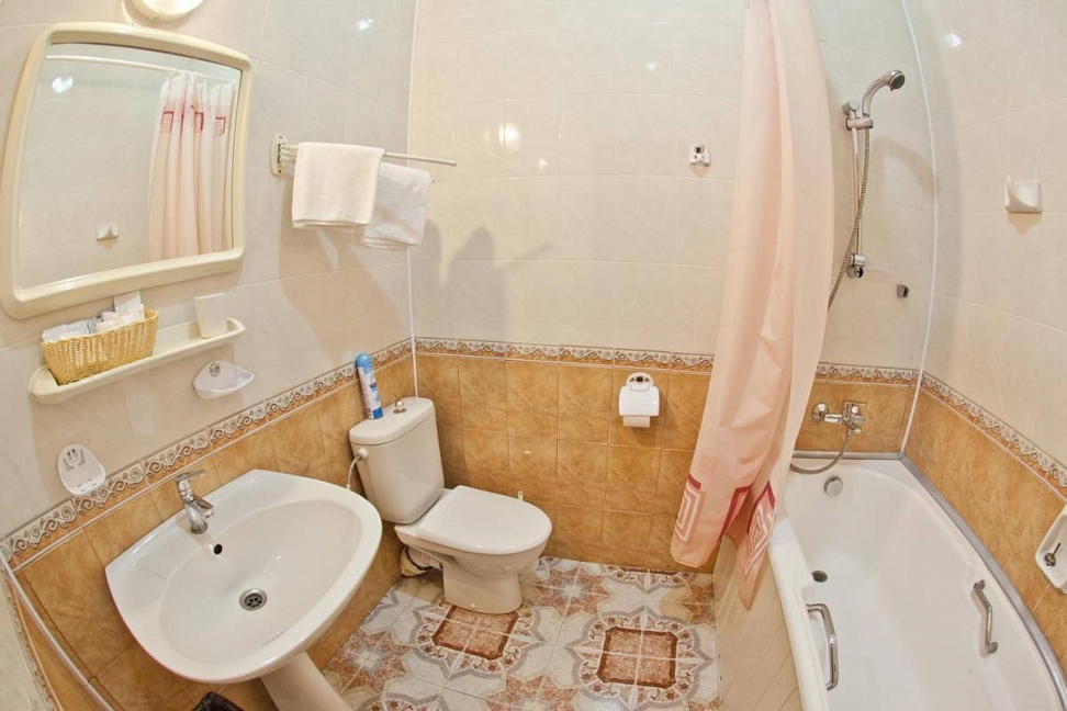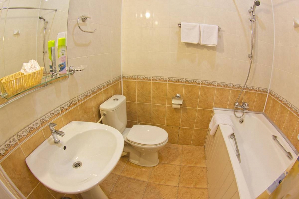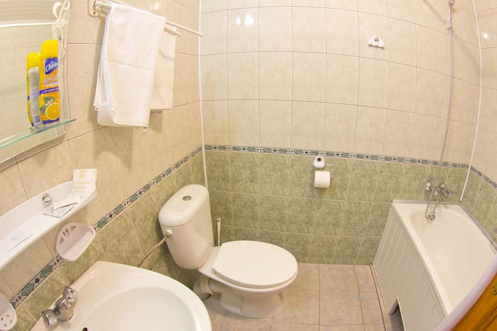 В номерах хорошо сделан ремонт, сигнал Wi-Fi устойчивый, есть холодильник, много розеток. Санузел просторный и чистый