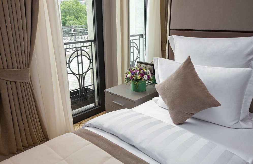Номера отеля "Ambasadori" созданы, чтобы обеспечить ваш комфорт и удовлетворить самые взыскательные потребности. Они оформлены в современном стиле с элементами грузинской культуры и оборудованы всем необходимым, включая кондиционер, телевизор, мини-бар и бесплатный Wi-Fi. Вы сможете расслабиться и насладиться отличным видом на город из окна вашего номера.